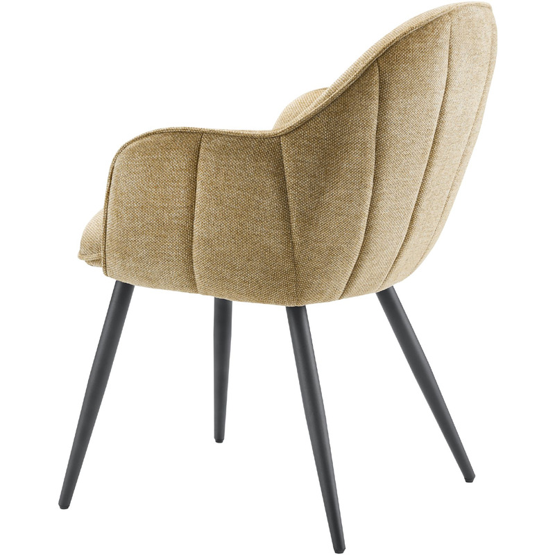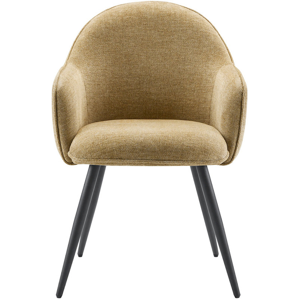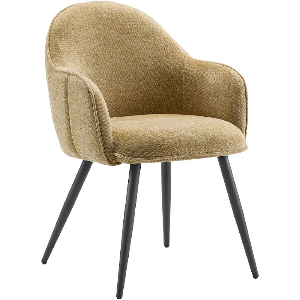 De stoelen hebben een uitgesproken uitstraling en zijn leverbaar in 4 verschillende kleuren. Deze stof geeft de armstoel een zachte touch en een vintage uitstraling. De mooie stiknaden en de ronde lijnen springen direct in het oog. Dit alles gecombineerd met de stoere metalen poten maakt het een speels model.