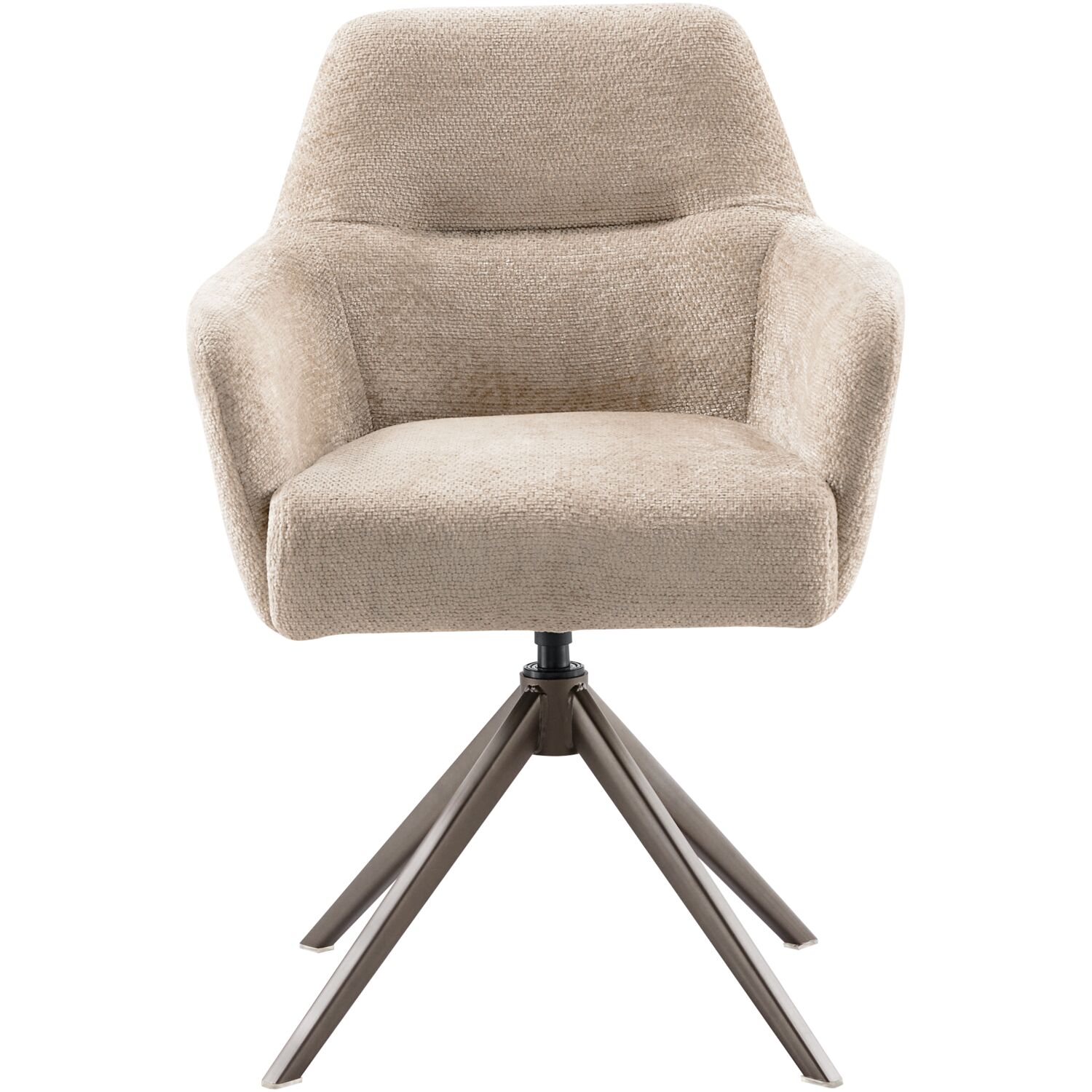 De comfortabele eetkamerstoel Bowina is uitgevoerd in een sterke en zachte beige bouclé stof en met een draaibaar onderstel inclusief terugdraaimechanisme. Hierdoor zal de stoel altijd weer naar zijn oorspronkelijke positie terugdraaien. Bowina beschikt over een comfortabel zitcomfort en is dan ook erg geschikt voor een heerlijk avondje tafelen met vrienden of familie.