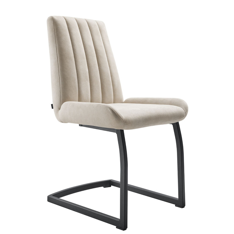 Bij de poten kun je kiezen uit een eetstoel met sledepoot, een armstoel met 4 rechte poten met parketwieltjes, en een eetstoel met 4 schuine poten, allemaal in zwart metaal. De rugstiksels zijn leverbaar in horizontale sierstiksels, verticale sierstiksels en vierkante sierstiksels. Met deze stiksels krijgt iedere stoel weer een andere uitstraling.