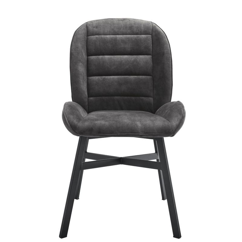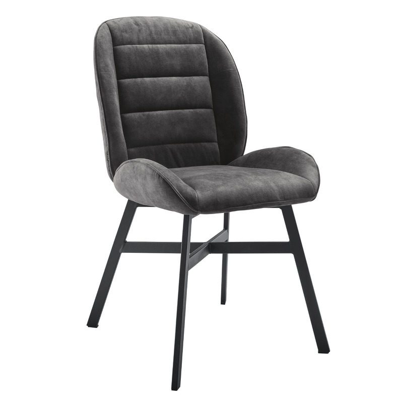 Uitgevoerd in stof goldy antraciet met horizontale banen op de rug en zwart metalen poten.