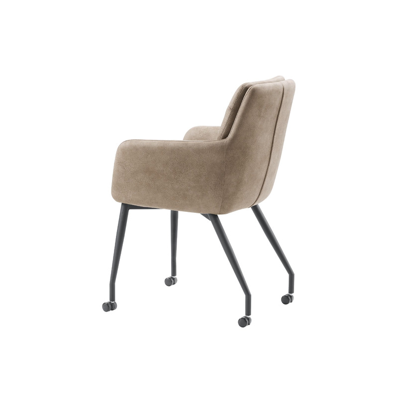 De armstoel Charda is uitgevoerd in de stof Zorro in de kleur taupe. De rugleuning van de armstoel is voorzien van horizontale sierstiksels. De stoel heeft zwart metalen poten, wat zorgt voor een industriële look. Armstoel Charda wordt ongemonteerd geleverd, maar is met de bijgesloten handleiding zo gemonteerd of is het mogelijk om tegen een meerprijs de stoelen te laten monteren.