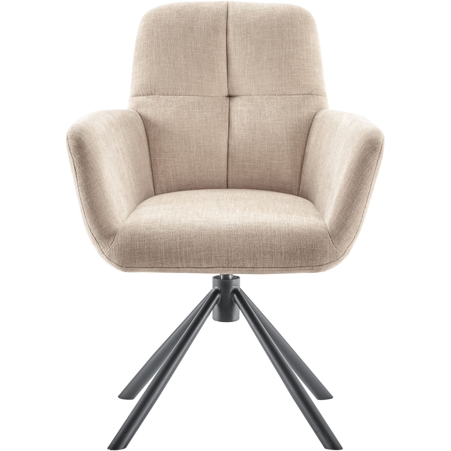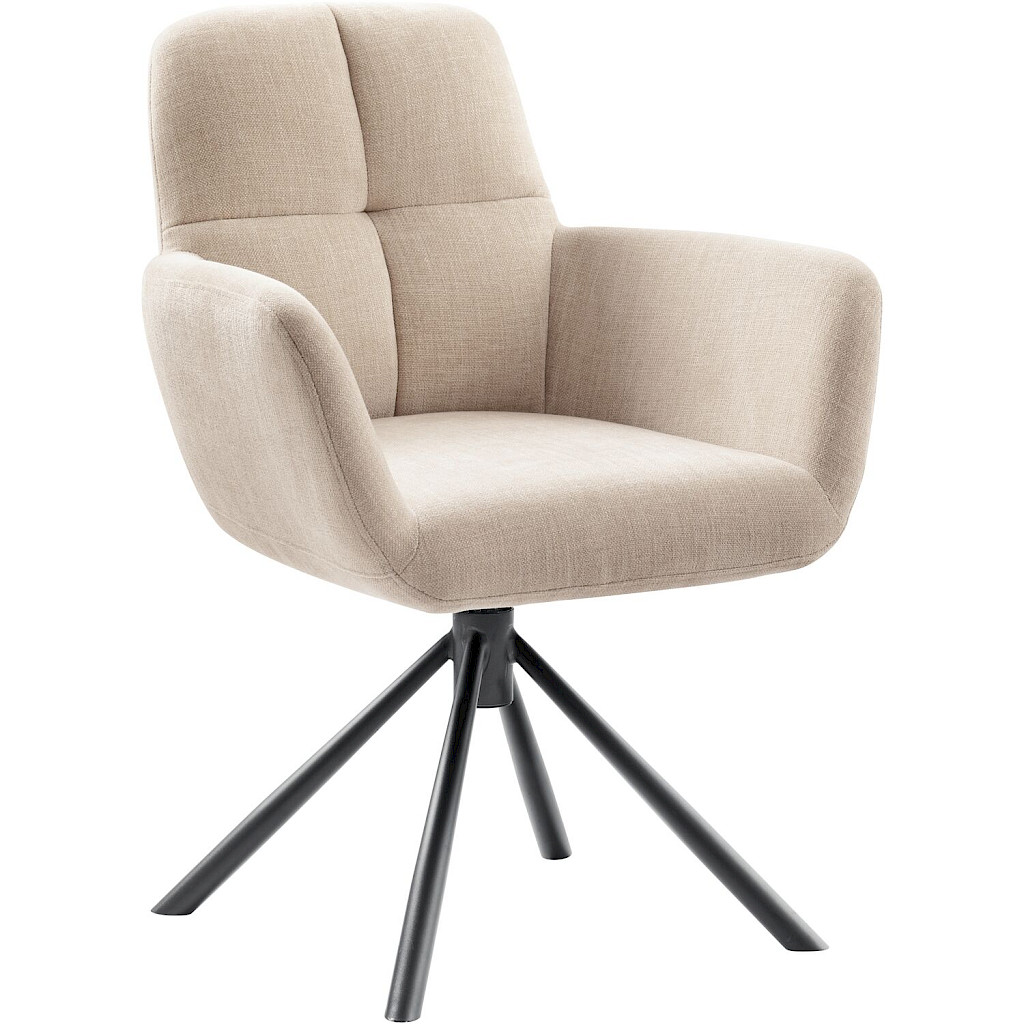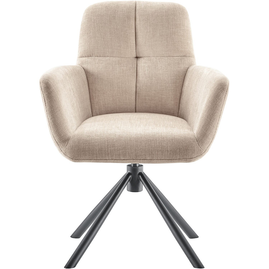 Armstoel Ciolina in kleur zand nodigt je uit om heerlijk een avond te tafelen. Deze eetkamerstoel is leverbaar in 3 actuele kleuren: beige, zand en grijs. De rug is voorzien van een mooi vierkant stiksel wat de stoel een elegante look geeft. Model Ciolina is standaard voorzien van een zwart metalen poot inclusief terugdraaimechanisme met 360 graden draaibare functie. Hierdoor staat je stoel altijd netjes aan de tafel en kun je gemakkelijk in en uit de armstoel stappen.
