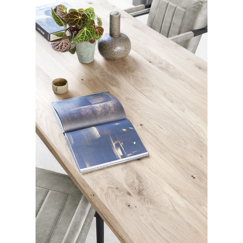 Door een eenvoudig stappenplan te doorlopen stel je jouw ideale armstoel of eetbank samen. Zo heb je de keuze uit diverse stikselmotieven zoals banen, een enveloppe stiksel en een carré vormig stiksel. Om een verrassende twist aan je interieur te geven kun je er ook voor kiezen om aan je eettafel diverse stikselmotieven te laten zien. Het metalen frame is uitgevoerd in vintage zwart.