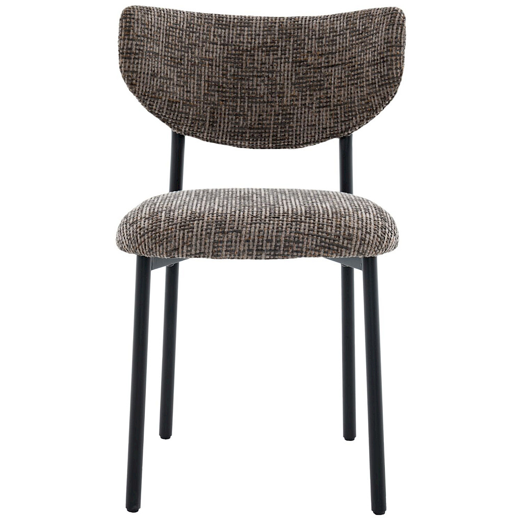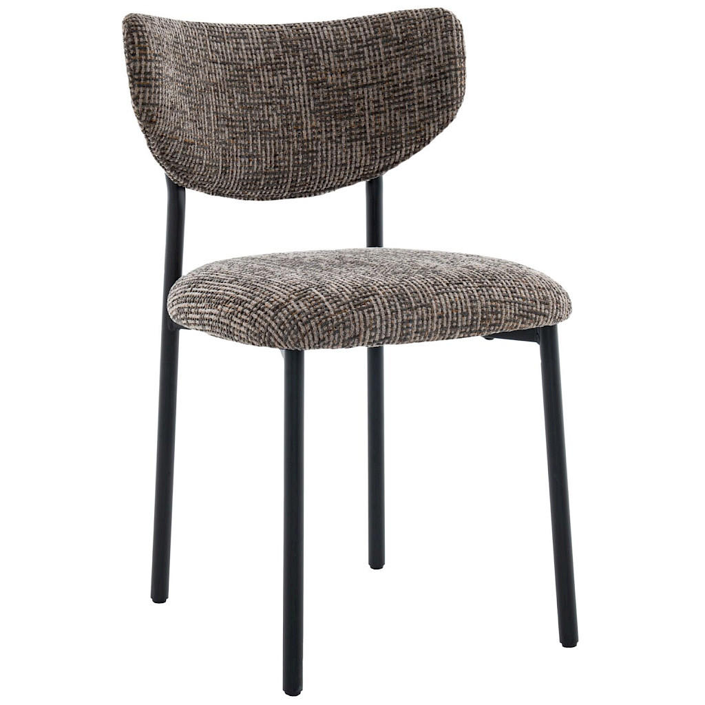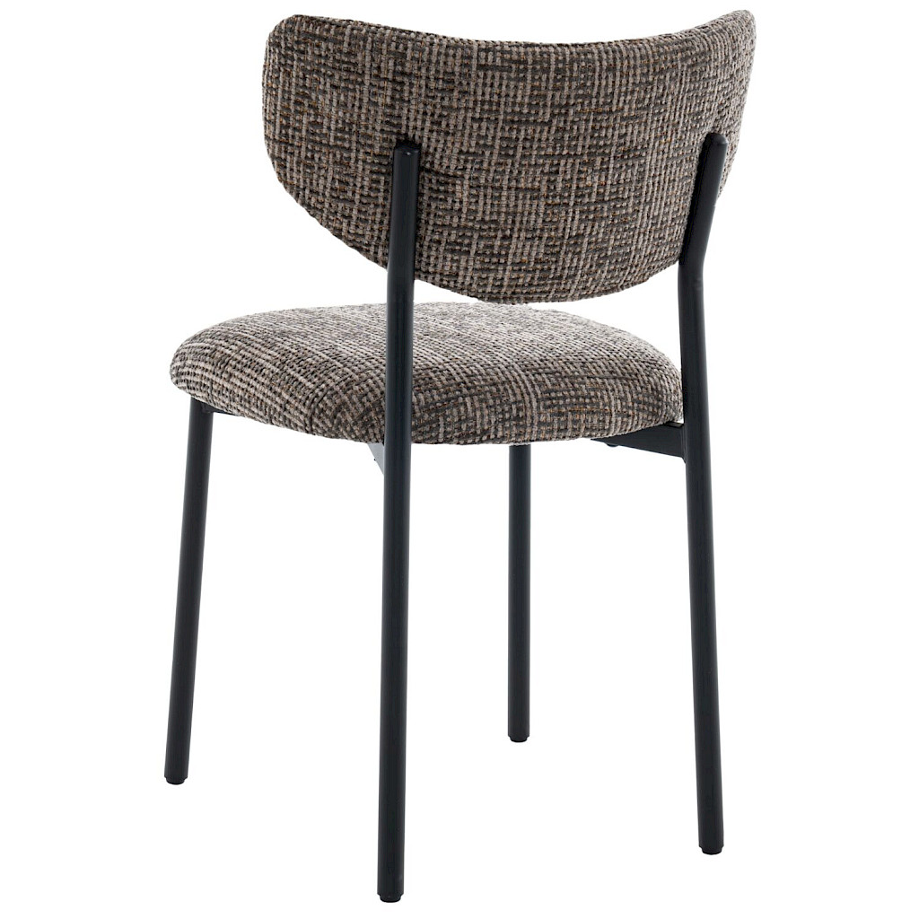 Eetkamerstoel Emala heeft een trendy uiterlijk en zit ook nog eens heerlijk comfortabel. Deze leuke eetkamerstoel is uitgevoerd in een prachtige bruine grof geweven stof en zwarte metalen poten.