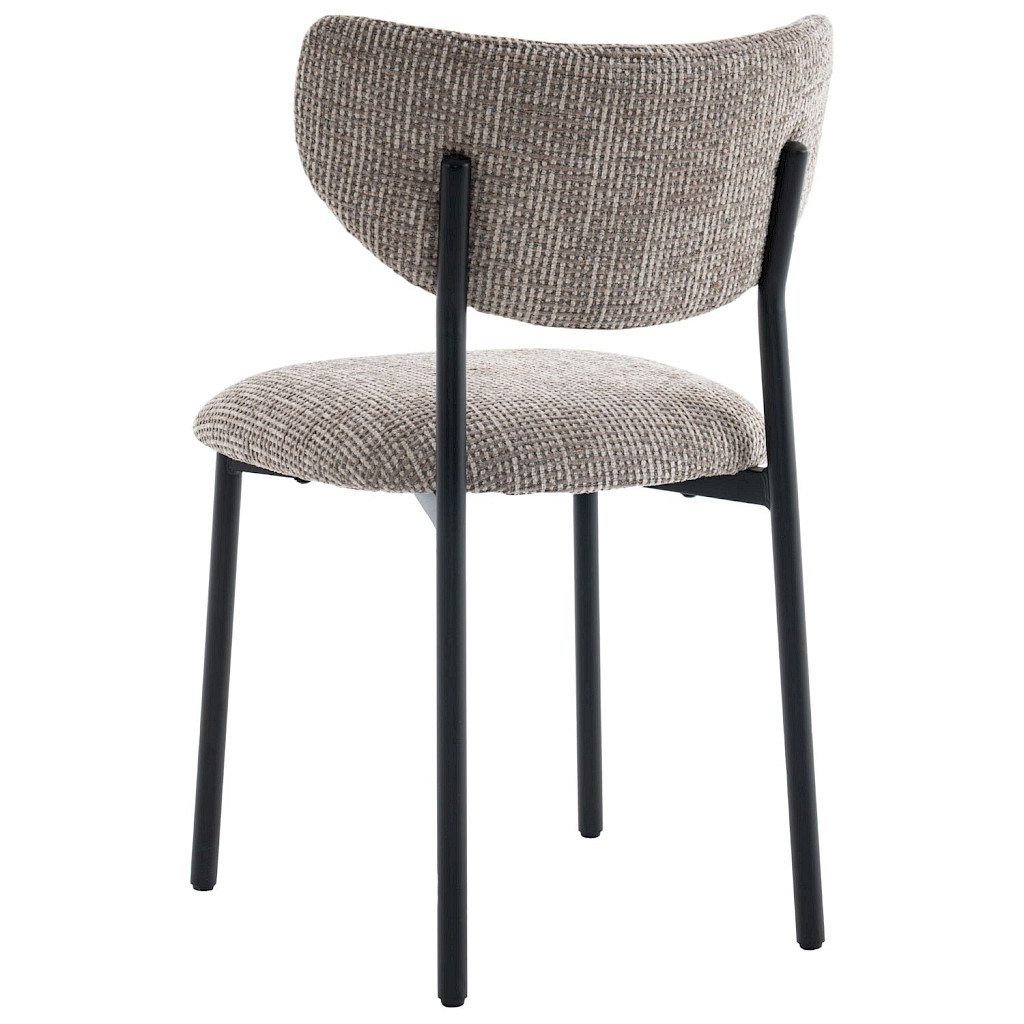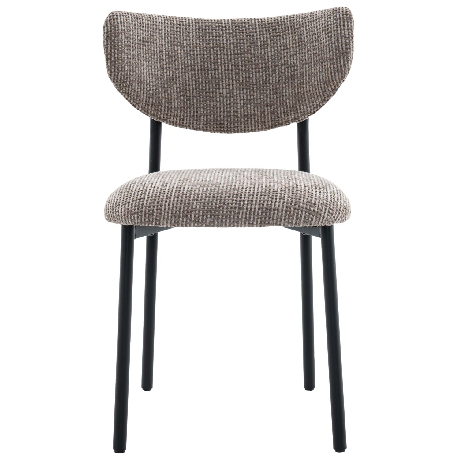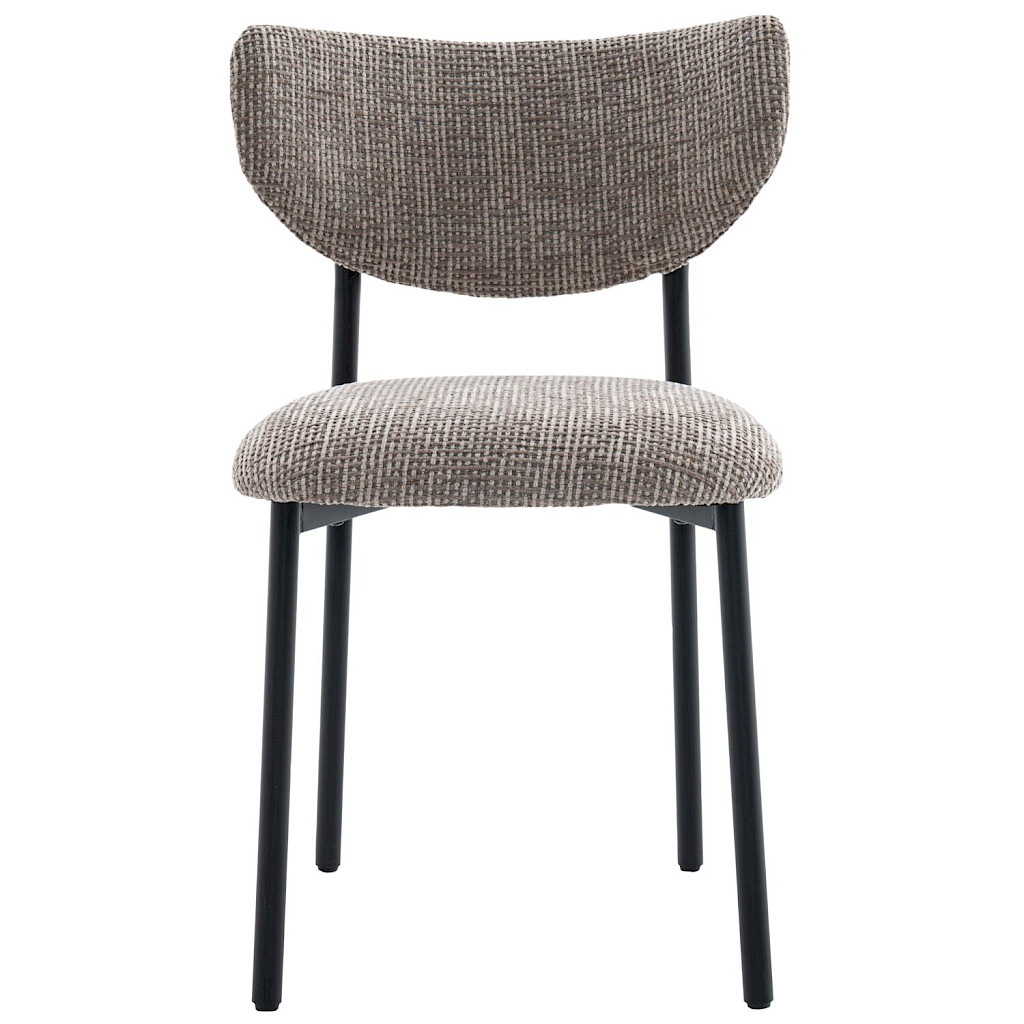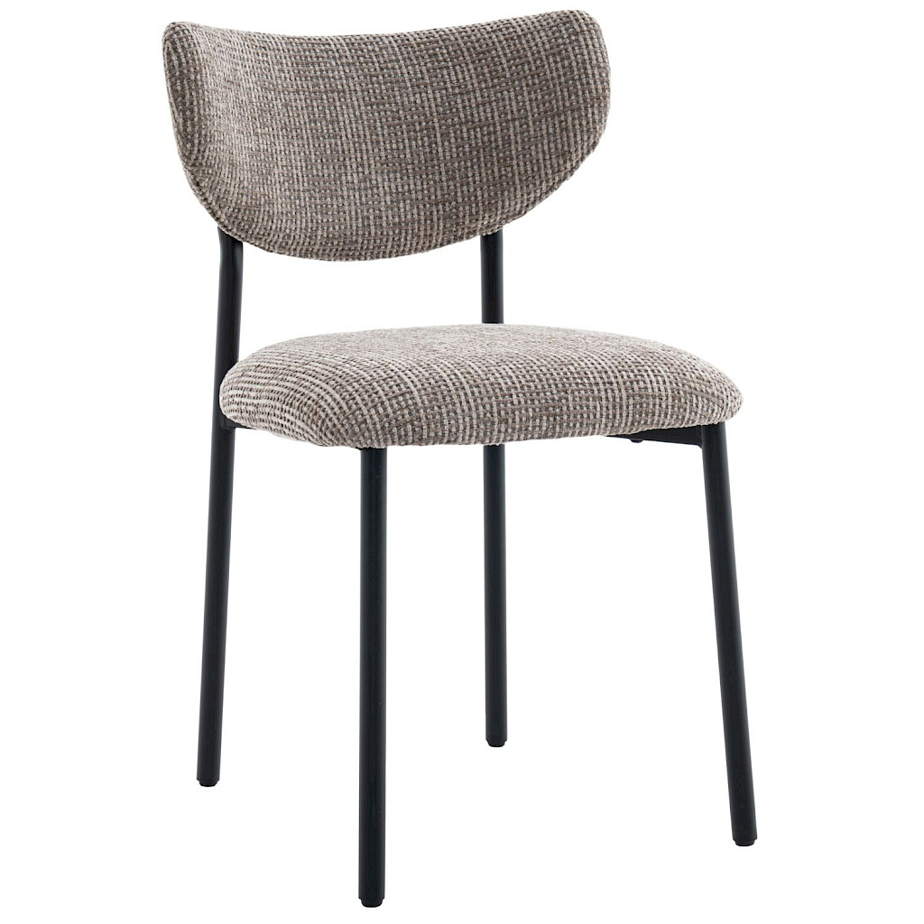 Eetkamerstoel Emala heeft een trendy uiterlijk en zit ook nog eens heerlijk comfortabel. Deze leuke eetkamerstoel is uitgevoerd in een prachtige taupe kleurige grof geweven stof en zwarte metalen poten.