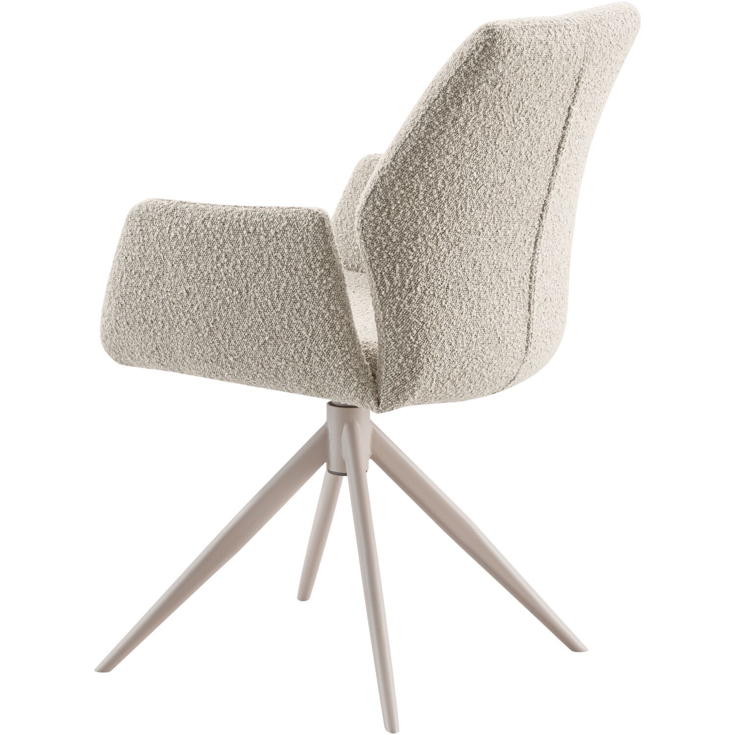 Eetkamerstoel Faido is de perfecte keuze voor wie op zoek is naar een comfortabele stoel met een tijdloze uitstraling. De stoel is bekleed met een licht grijsbruine bouclé stof. Deze stof heeft een speelse, geweven structuur met fijne lussen en voelt toch verrassend zacht en warm aan. De teruggetrokken naad op de rugleuning geeft de stoel een verfijnde uitstraling, terwijl de taupegrijze metalen poten zorgen voor een stijlvolle en perfecte match met de bekleding.