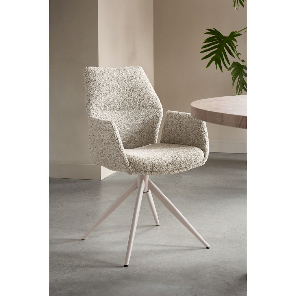 De armstoel Faido is verkrijgbaar in verschillende kleuren en stoffen, zodat je de uitvoering kunt kiezen die perfect past bij jouw interieur. Mix en match voor een speelse uitstraling of kies meerdere stoelen voor een uniforme look aan je eettafel.