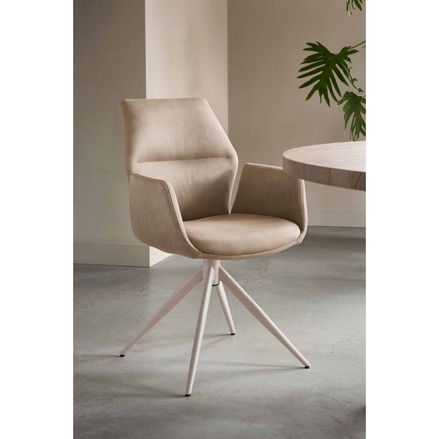 Eetkamerstoel Faido is de perfecte keuze voor wie op zoek is naar een comfortabele stoel met een tijdloze uitstraling. De stoel is bekleed met een microvezelstof in een warme taupekleur, die zacht aanvoelt en makkelijk te onderhouden is. Microvezel is bovendien een duurzame stof die bekendstaat om zijn slijtvastheid, waardoor de bekleding er lang mooi uit blijft zien. De teruggetrokken naad op de rugleuning geeft de stoel een verfijnde uitstraling, terwijl de taupegrijze metalen poten zorgen voor een stijlvolle en perfecte match met de bekleding.