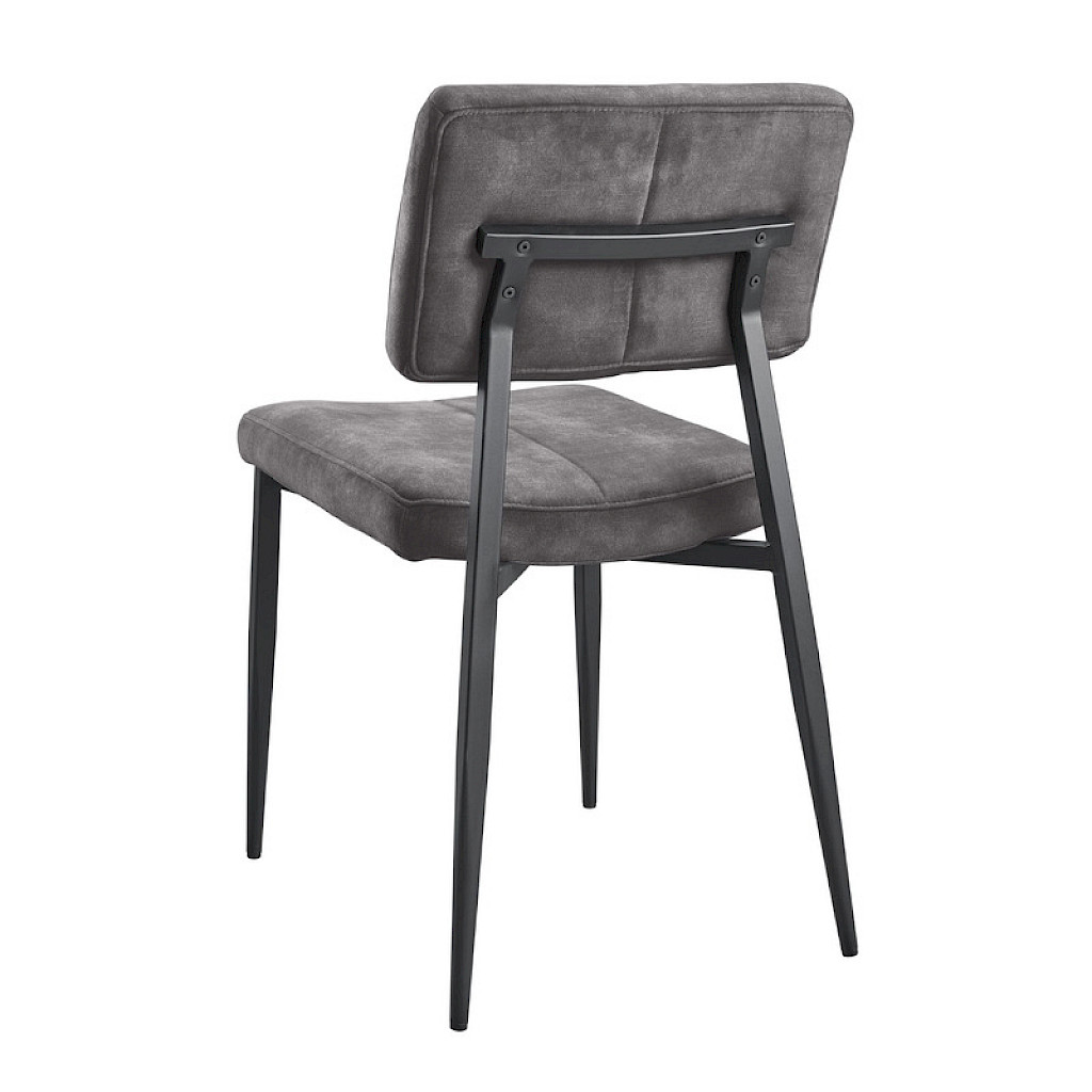 Eetkamerstoel Gento is uitgevoerd in een heerlijk zachte velvetstof in een donkergrijze kleur. Velvetstof heeft rechtopstaande, korte vezels, die afhankelijk van de lichtinval en door over de stof te wrijven, lichter of donkerder van kleur lijkt. De stof heeft een luxe uitstraling en voelt zacht en comfortabel aan.