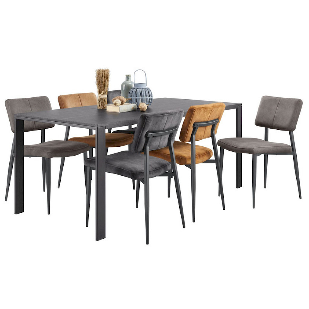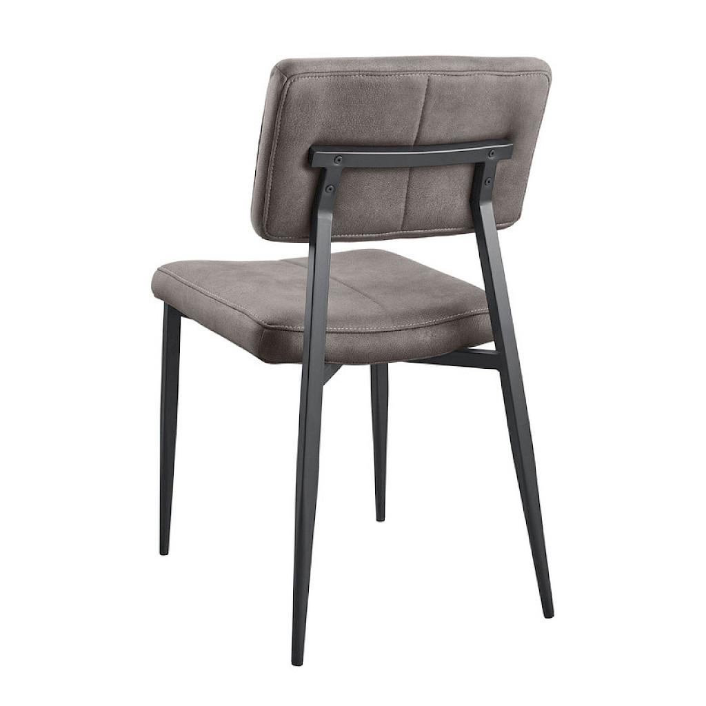 Eetkamerstoel Gento is uitgevoerd in een donkergrijze microvezelstof met zichtbare nerven. Microvezel is een zachte, onderhoudsvriendelijke stof.
