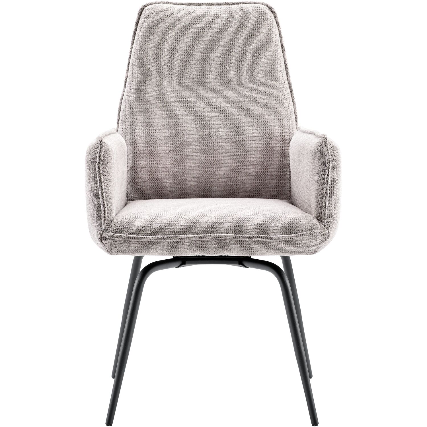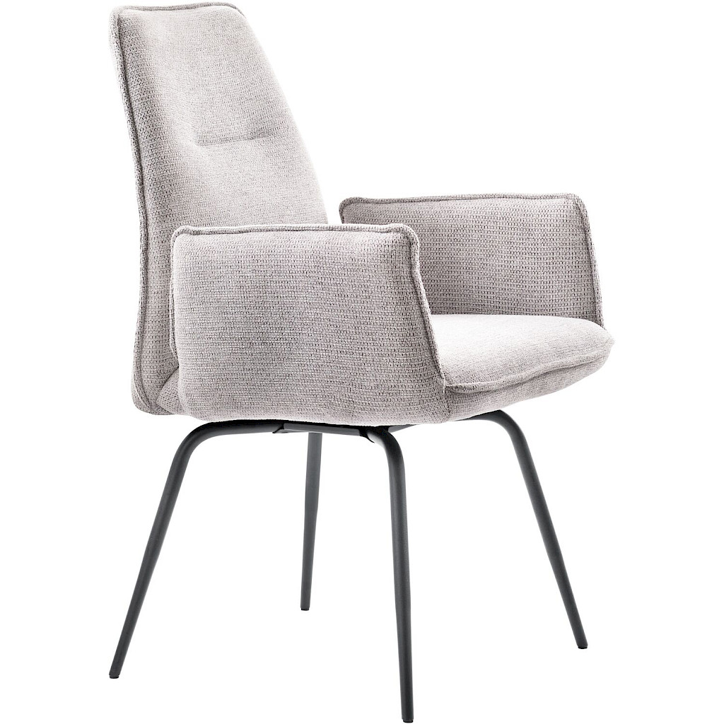 Deze slanke, stijlvolle eetkamerstoel heeft een zwarte metalen 4-poot die bovendien ook nog eens 180 graden draaibaar is. Daarnaast is deze stoel voorzien van een meeverende rugleuning, wat een op-en-op comfort biedt. Naast deze armstoel uitvoering, is de Hatomi ook verkrijgbaar zonder armleuningen.