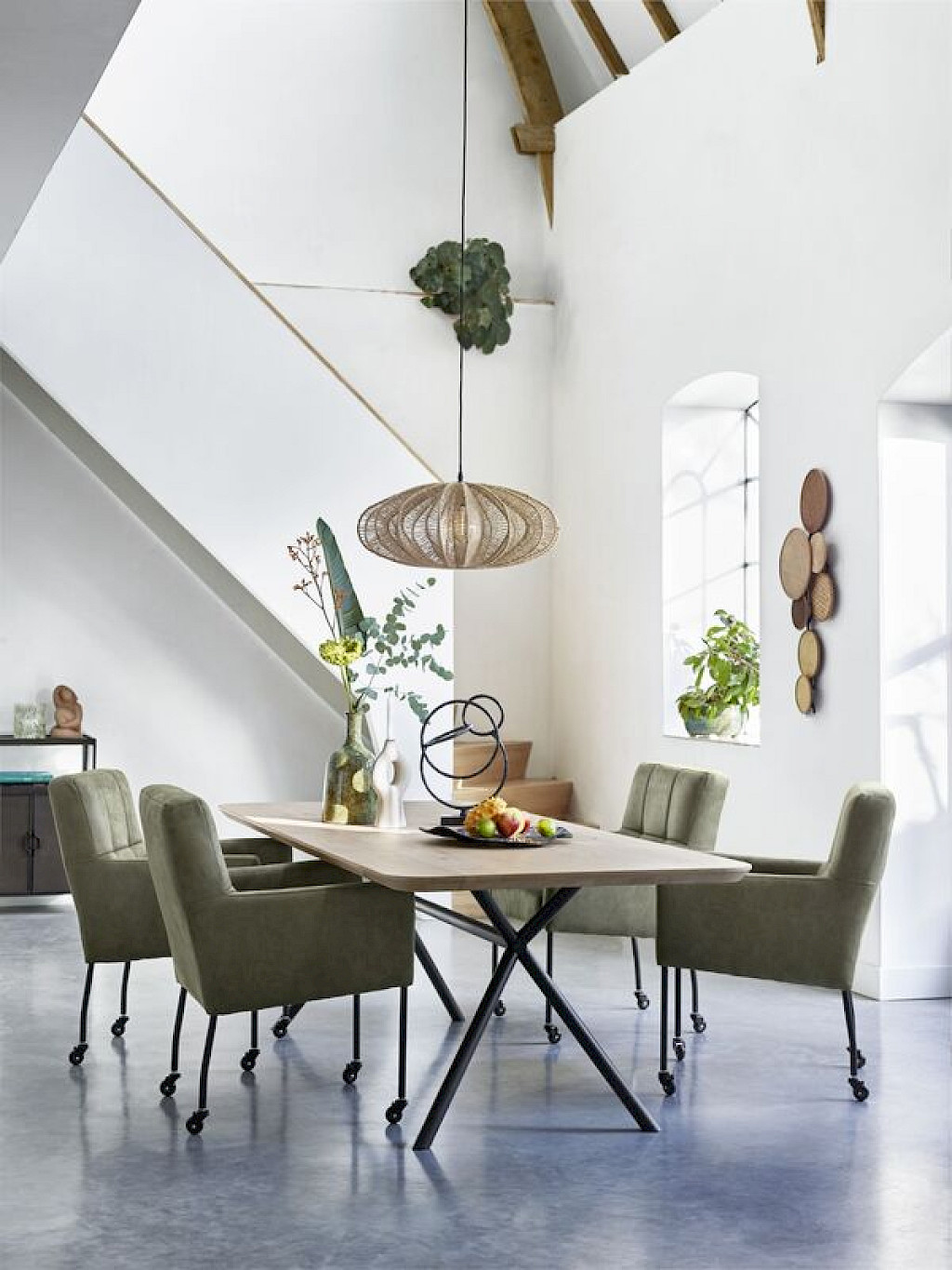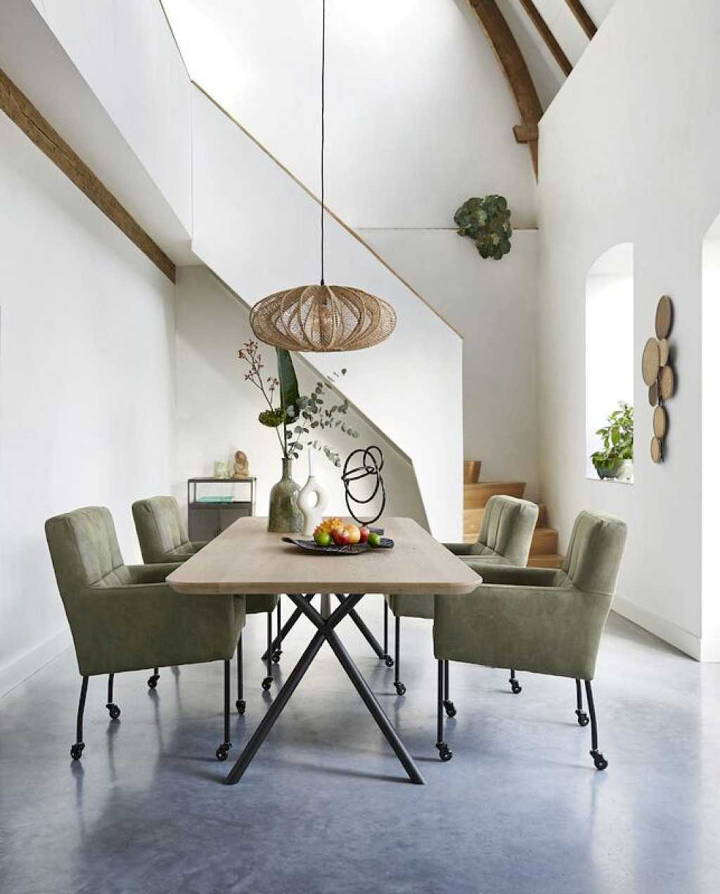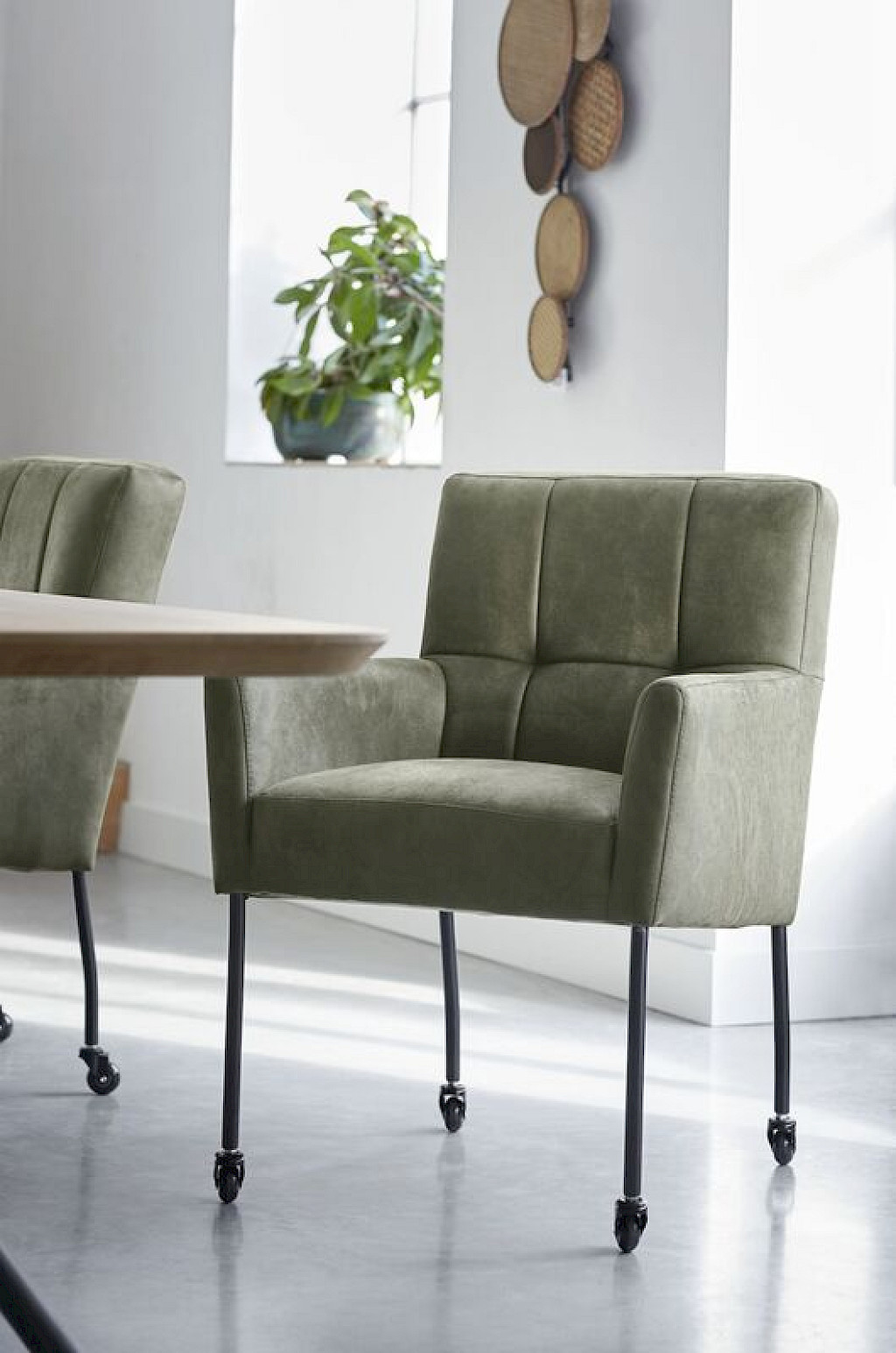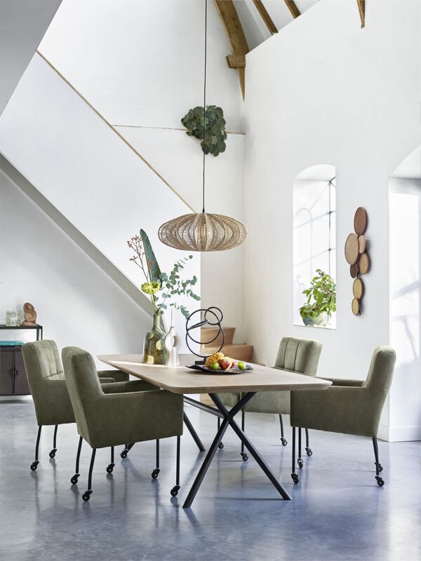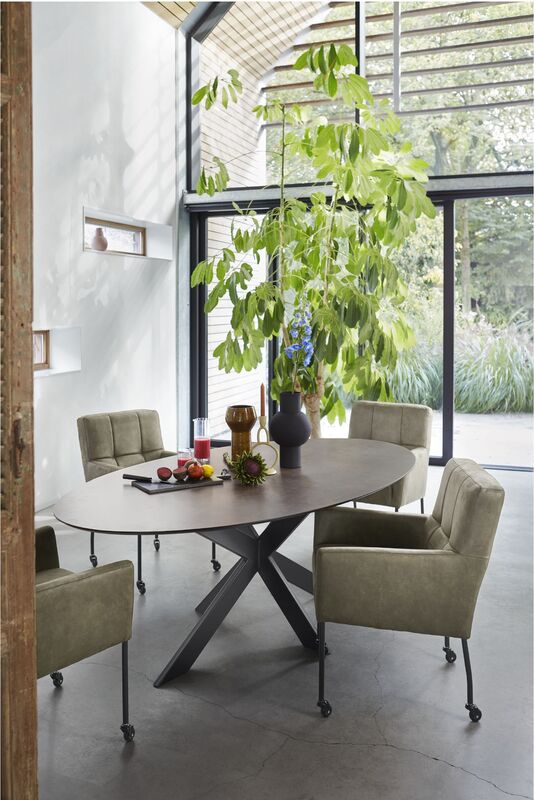 Model Janinto is leverbaar als een eetstoel én als armstoel, het model heeft een stoere uitstraling door de volle rug en zitting, de zwart metalen poten met skatewielen en het stiksel in de rug. Janinto heeft een stalen nosagvering gecombineerd met HR-schuim in de zitting om je een optimaal zitcomfort te bieden. Heerlijk om uitgebreid te tafelen, maar Janinto leent zich ook uitstekend om bij je zithoek te plaatsen als je visite krijgt.
