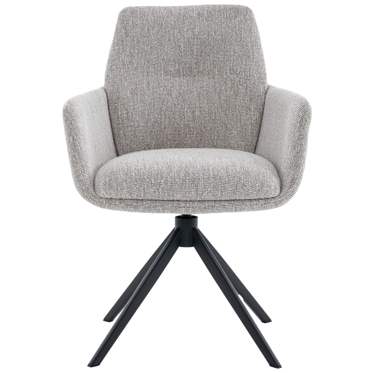 Armstoel Jasmia is met zijn moderne uiterlijk een echte parel voor in je eetkamer. Deze tijdloze eetkamerstoel is uitgevoerd in een prachtige beige bouclé stof en een zwart metalen onderstel inclusief terugdraaimechanisme. Hierdoor zal de stoel altijd weer naar zijn oorspronkelijke positie terugdraaien.
