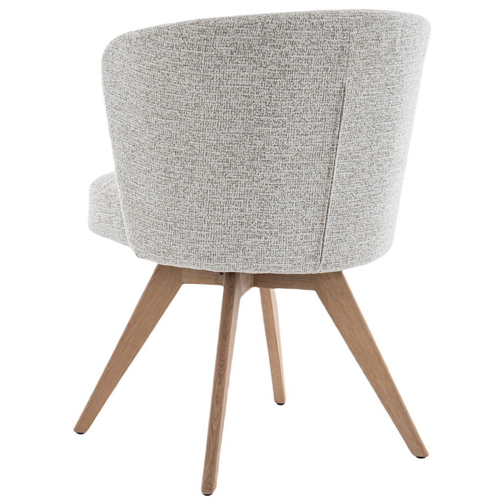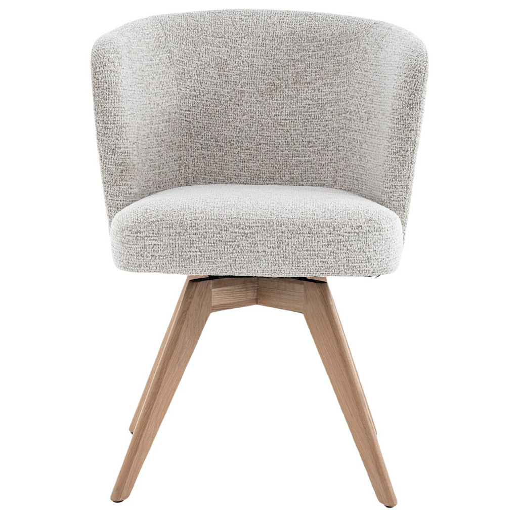Armstoel Mandolia is met zijn trendy afgeronde vorm een echte eye-catcher voor aan je eettafel. Deze moderne eetkamerstoel is uitgevoerd in een mooie beige weefstof en een draaibaar massief eiken onderstel inclusief terugdraaimechanisme. Hierdoor zal de stoel altijd weer naar zijn oorspronkelijke positie terugdraaien.