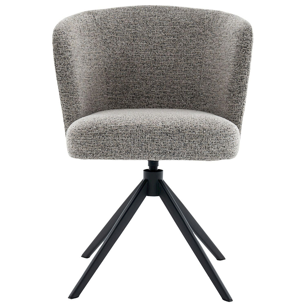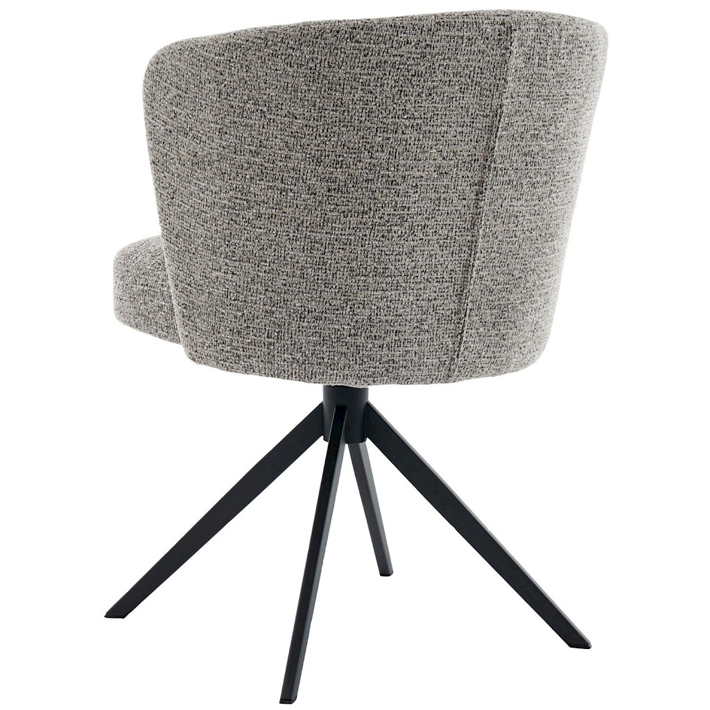 Armstoel Mandolia is met zijn trendy afgeronde vorm een echte eye-catcher voor aan je eettafel. Deze moderne eetkamerstoel is uitgevoerd in een mooie taupe kleurige weefstof en een draaibaar zwart metalen onderstel inclusief terugdraaimechanisme. Hierdoor zal de stoel altijd weer naar zijn oorspronkelijke positie terugdraaien.