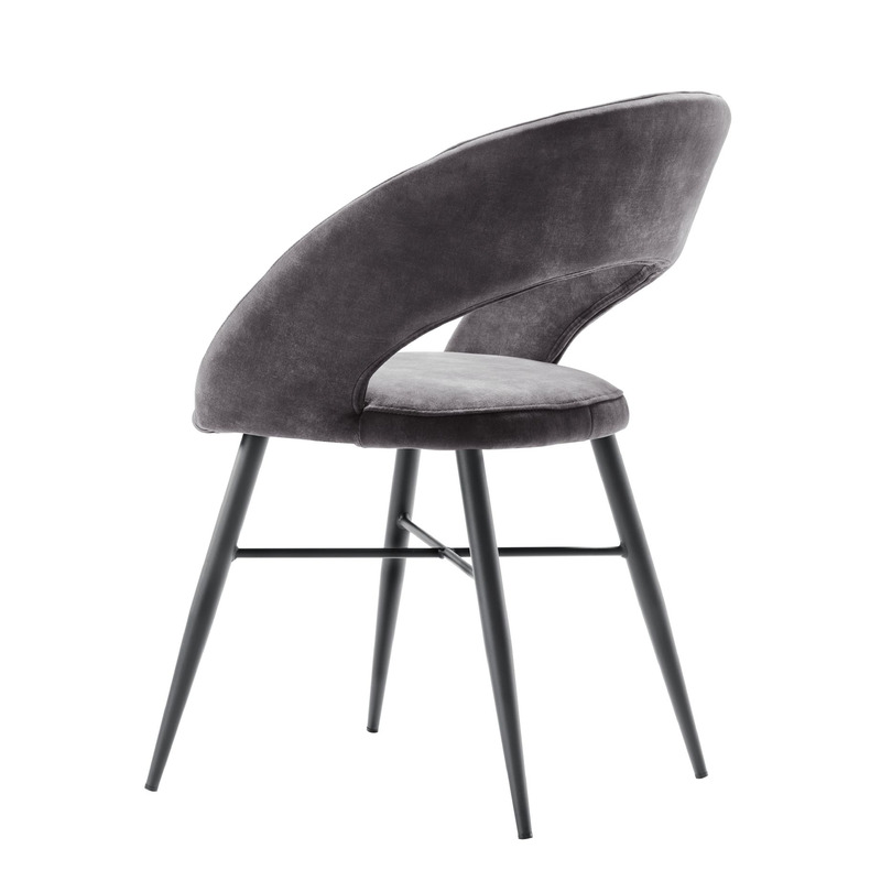 Stoel Marasino is uitgevoerd in een heerlijk zachte velvetstof in een donker grijze kleur. Velvetstof heeft rechtopstaande, korte vezels, die afhankelijk van de lichtinval en door over de stof te wrijven, lichter of donkerder van kleur lijkt. De stof heeft een luxe uitstraling en voelt zacht en comfortabel aan.
