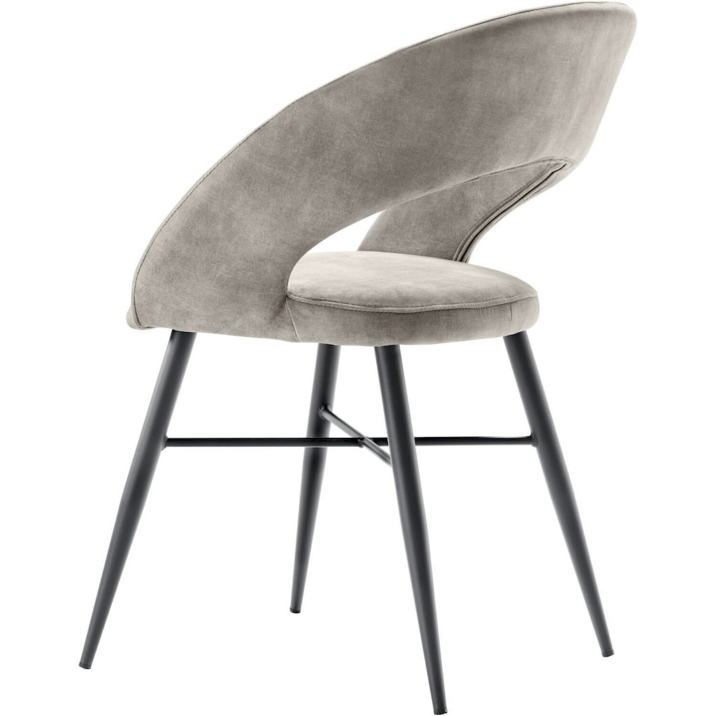 Stoel Marasino is uitgevoerd in een heerlijk zachte velvetstof in een licht grijze kleur. Velvetstof heeft rechtopstaande, korte vezels, die afhankelijk van de lichtinval en door over de stof te wrijven, lichter of donkerder van kleur lijkt. De stof heeft een luxe uitstraling en voelt zacht en comfortabel aan.