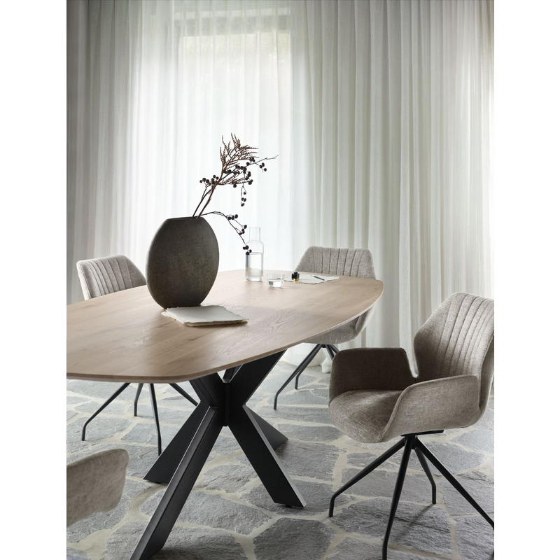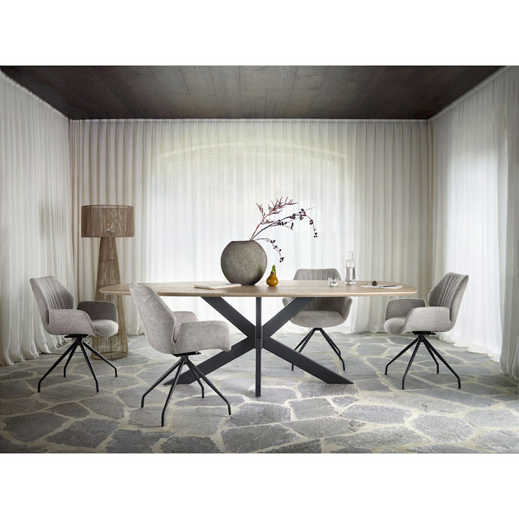 Uitgevoerd in stof miami 12-taupe met zwart metalen spinpoot met terugdraaimechanisme. Maximale belastbaarheid bedraagt 125 kg. OP=OP