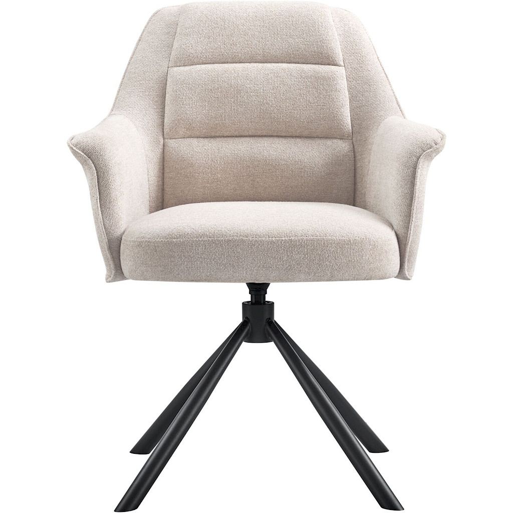 Deze comfortabele armstoel Masanto heeft een zitting die voorzien is van pocketvering. De rug heeft 3 banen, wat de stoel een speels effect geeft. Standaard is deze eetstoel voorzien van een zwarte metalen poot met terugdraai-mechanisme, ook wel auto-return functie genoemd. Hierdoor staat deze altijd netjes aan tafel en kun je gemakkelijk uit de armstoel stappen. Daarnaast is de rug voorzien van een handgreep, waardoor je deze stoel eenvoudig naar je toe kunt trekken.