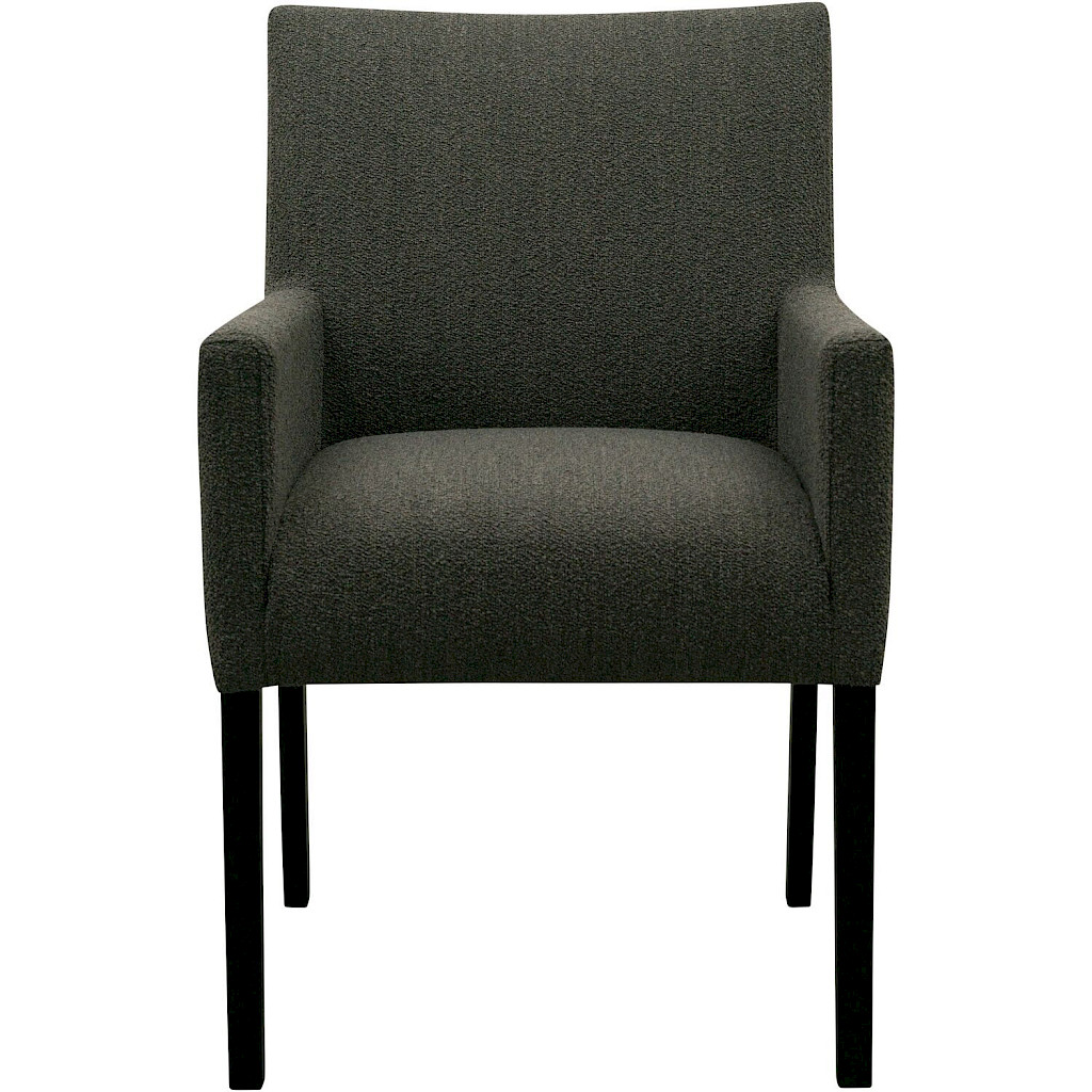 Armstoel Avanza is bekleed met een grijze boucléstof met een rijke, volle structuur. De stof voelt heerlijk zacht aan en heeft een levendige uitstraling dankzij de fijne geweven lussen. Dit geeft de stoel een warme, uitnodigende look die perfect past in een sfeervol interieur. De zwarte houten poten zorgen voor een stijlvol en rustig contrast. De poten zijn al gemonteerd, dus de stoel is direct klaar voor gebruik.