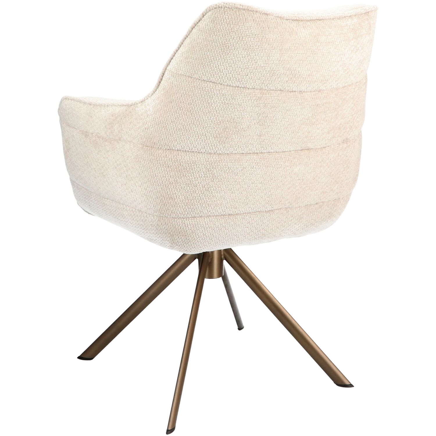 De stof Movie is een grof geweven velours achtige, die zacht aanvoelt. Het strake onderstel is uitgevoerd in een prachtige bronskleur. Deze is draaibaar en voorzien van een terugdraaimechanisme. Hierdoor kun je gemakkelijk van tafel weglopen, waarna de stoel weer terugdraait in zijn oorspronkelijke positie. Dat is pas handig!