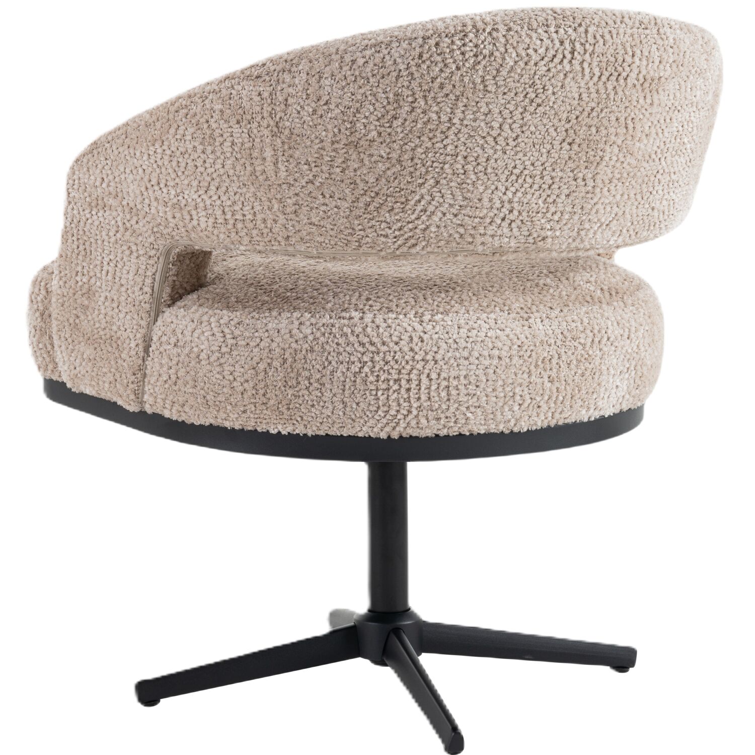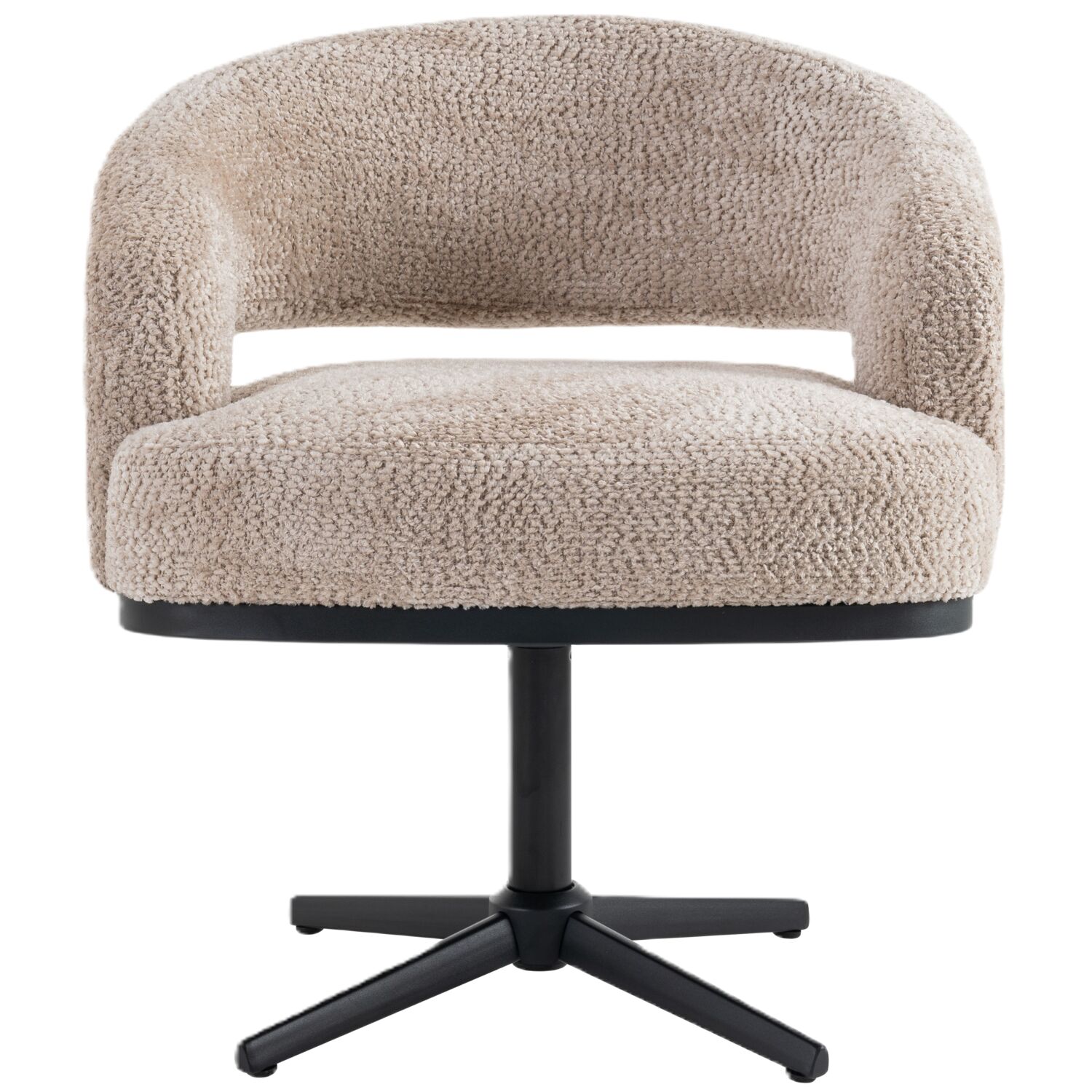 Uitgevoerd in stof be lovely 170-beige met een zwarte metalen draaipoot.