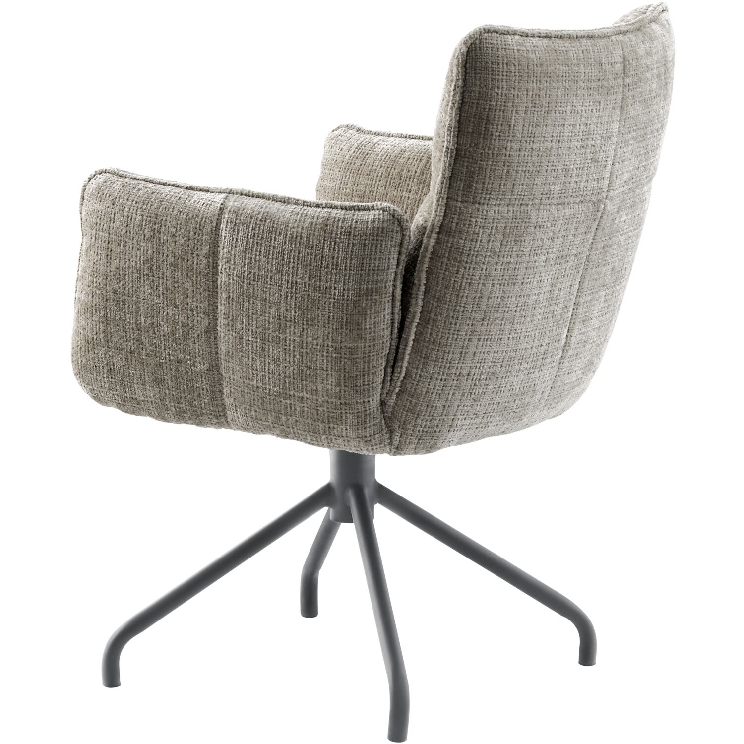 Stof Cremona heeft een zachte touch en heeft een ingeweven blokjesmotief voor een rijke uitstraling. Bovendien is de stof makkelijk schoon te maken. Het 360 graden draaibare onderstel maakt het gemakkelijk wegdraaien wanneer je aan tafel zit. Daarna draait de stoel weer terug in zijn oorspronkelijke positie. Verpakkingseenheid; 2 stuks per kleur.