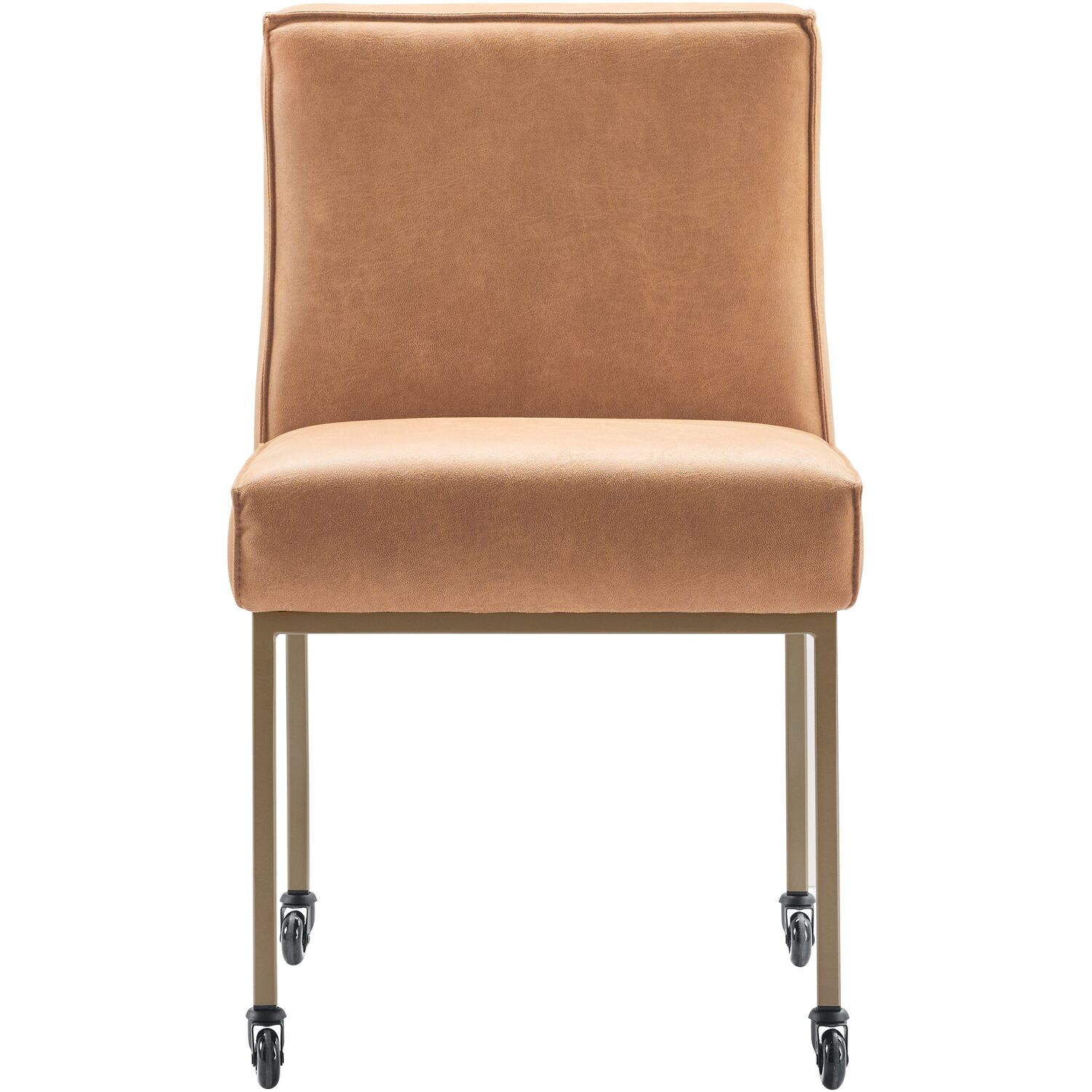 Eetkamerstoel Rona heeft een robuuste uitstraling door het gebruik van metalen rechte poten met wielen in de kleur champagne en stoere geknepen stiknaden. Hierdoor past Rona in diverse interieurstijlen. In de zitting en rugleuning is gebruik gemaakt van hoogwaardig HR-schuim om een zo lang mogelijke levensduur te kunnen garanderen. Dat is pas plezierig tafelen!