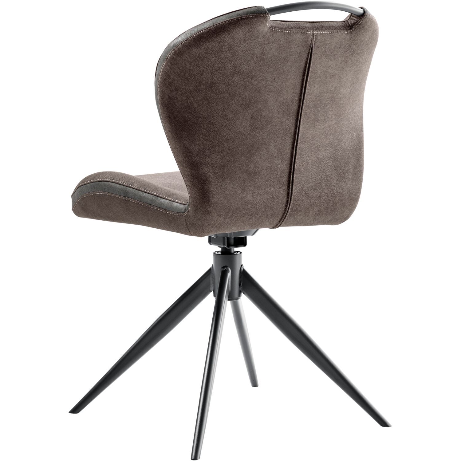 De Tantini-eetstoel is bekleed met microvezel in een antracietkleur, die zacht aanvoelt en makkelijk te onderhouden is. Het retrostiksel en de accentband benadrukken de karaktervolle vorm van de rug. De zitting en rug vormen één comfortabel geheel, terwijl de handgreep bovenaan de rugleuning het verplaatsen van de stoel gemakkelijk maakt. Het zwarte metalen onderstel biedt extra stevigheid en stabiliteit. Dankzij de draaifunctie met autoreturn kun je de stoel soepel in alle richtingen draaien, terwijl hij automatisch terugdraait naar de uitgangspositie wanneer je opstaat.