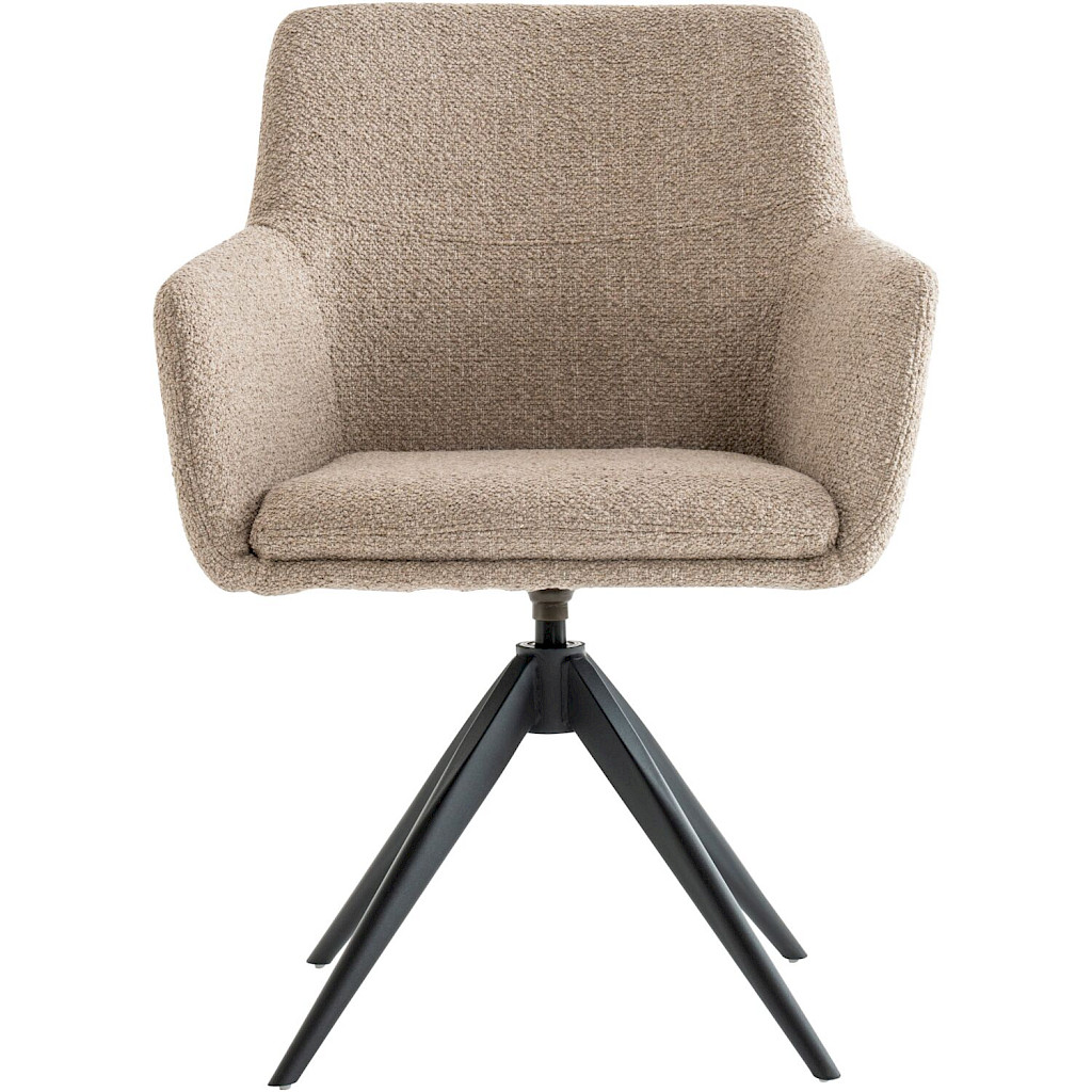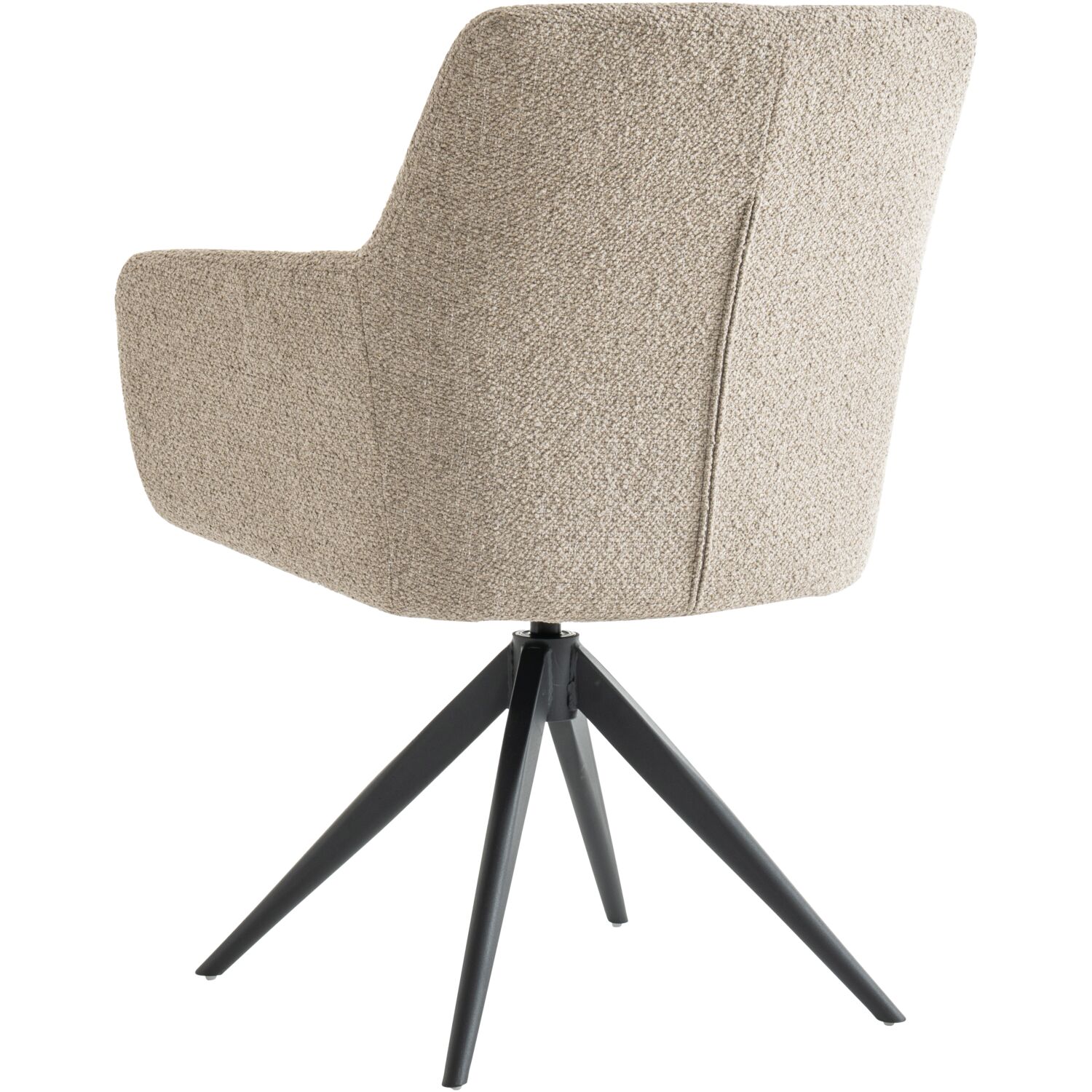 Wat de Vinta een bijzondere armstoel maakt, is de combinatie van unieke eigenschappen. Allereerst heeft de stoel een rank metalen onderstel met een automatisch terugdraaimechanisme, waardoor deze altijd netjes aan tafel staat en je makkelijk "uitstapt". Een ander leuk detail is dat de stoel verkrijgbaar is in 3 kleurtjes in de prachtige boucléstof rhythm.