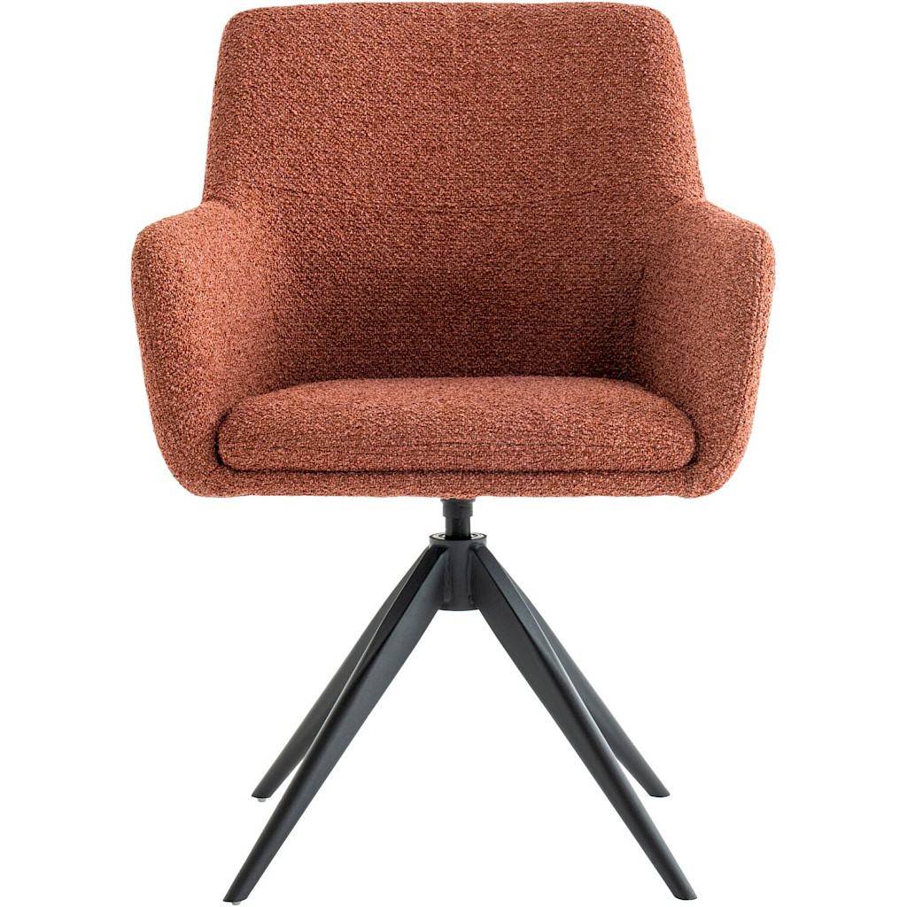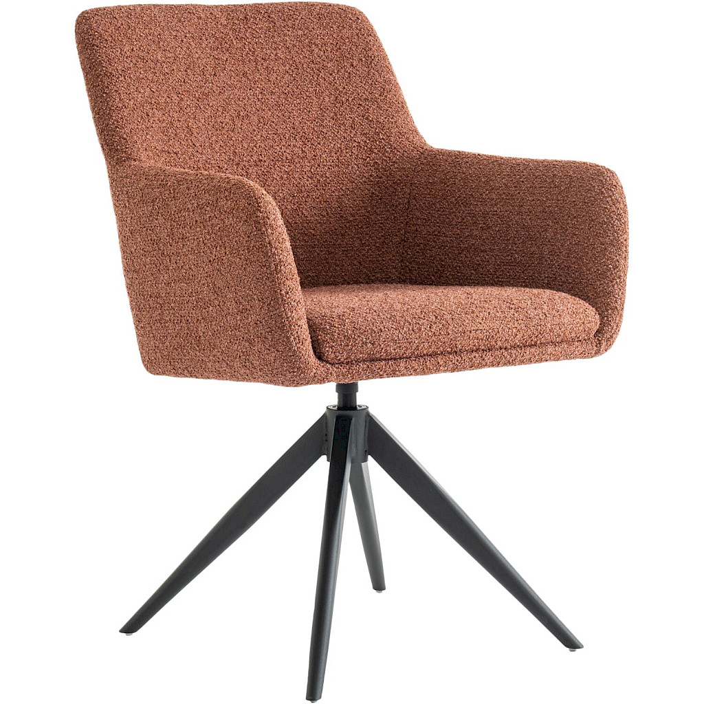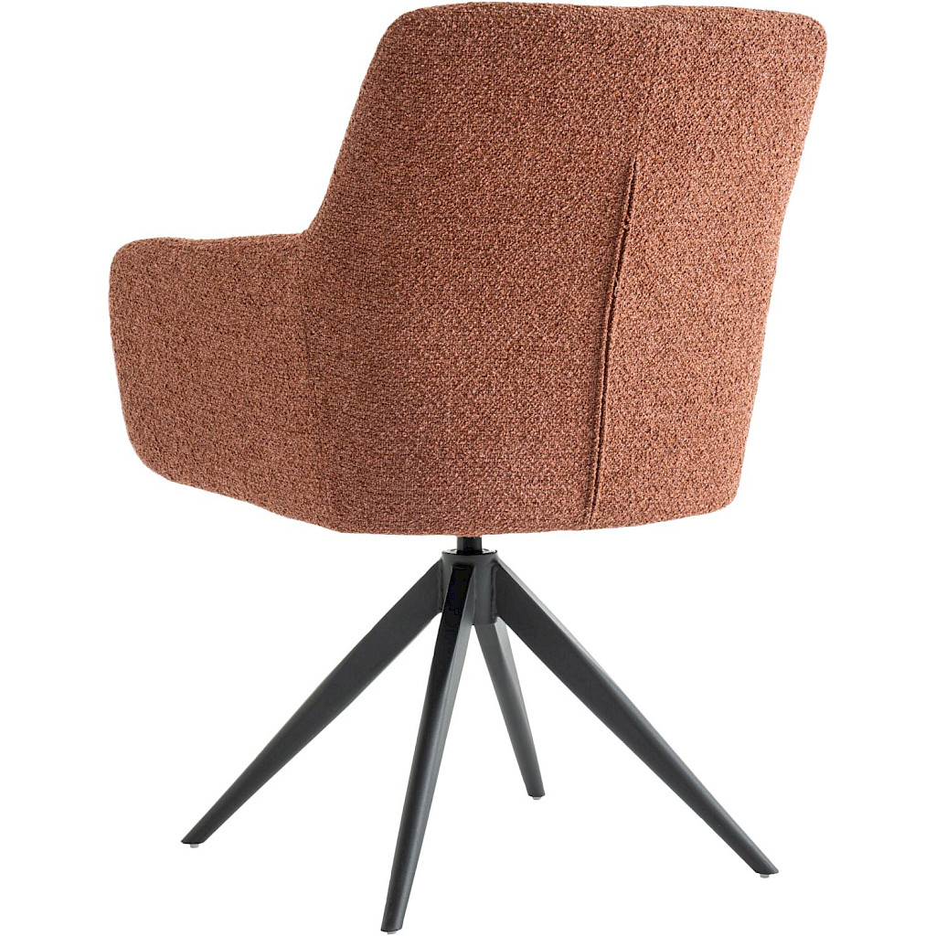 Wat de Vinta een bijzondere armstoel maakt, is de combinatie van unieke eigenschappen. Allereerst heeft de stoel een rank metalen onderstel met een automatisch terugdraaimechanisme, waardoor deze altijd netjes aan tafel staat en je makkelijk "uitstapt". Een ander leuk detail is dat de stoel verkrijgbaar is in 3 kleurtjes in de prachtige boucléstof rhythm.
