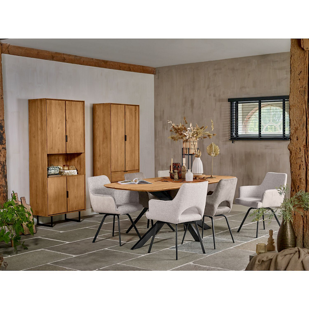 Ontdek de perfecte harmonie van elegantie en duurzaamheid met onze Deens ovale eettafel Aska. Het tafelblad, vervaardigd uit 3 cm dik recycled teak, straalt karakter en warmte uit. De met zorg afgeschuinde rand voegt een subtiel vleugje verfijning toe aan deze tijdloze creatie. De tafel staat op een moderne, metalen spinpoot die niet alleen voor stabiliteit zorgt, maar ook een eigentijdse touch aan je eetruimte geeft.