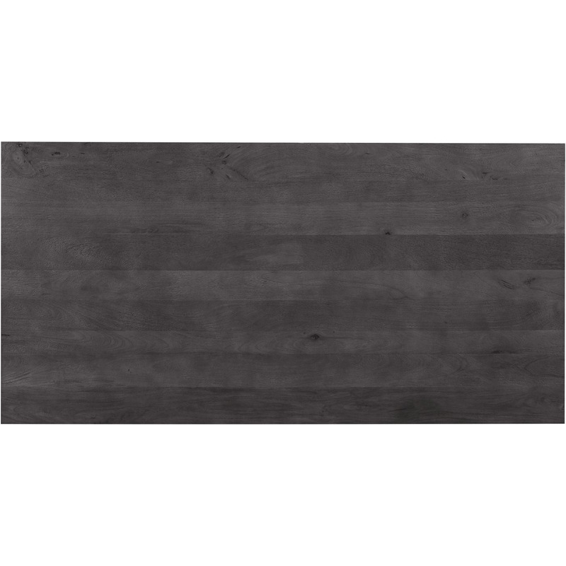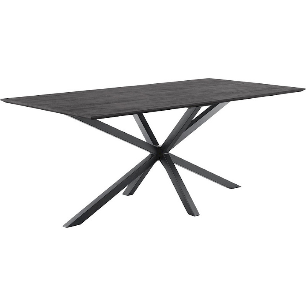 Transformeer jouw eetkamer met onze eettafel Piastra. Vervaardigd uit zwart mangohout (gezandstraald) straalt deze tafel warmte en karakter uit. Het mangohout, bekend om zijn duurzaamheid en warme tinten, voegt een natuurlijk element toe aan je ruimte terwijl de zwarte metalen spinpoot een eigentijdse uitstraling geeft. Door het mangohout zwart te kleuren voeg je een krachtig design element toe. De houtnerven en nuances maken elk meubel uniek en dragen bij aan een karaktervolle uitstraling.