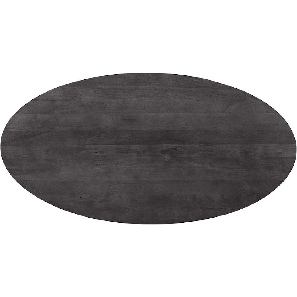De tafel heeft een ovaal blad met een lengte van 230 cm en een breedte van 105 cm, waardoor je in totaal 6 stoelen aan deze tafel kwijt kunt. Het 3 cm dikke tafelblad heeft een afgeschuinde bladrand, wat een vleugje verfijning toevoegt aan het ontwerp. De hoogte tot de onderkant van de tafel is ca. 74 cm; dit is belangrijk als je er armstoelen aan wilt zetten. De poot van de tafel is met behulp van de montagehandleiding eenvoudig te monteren.