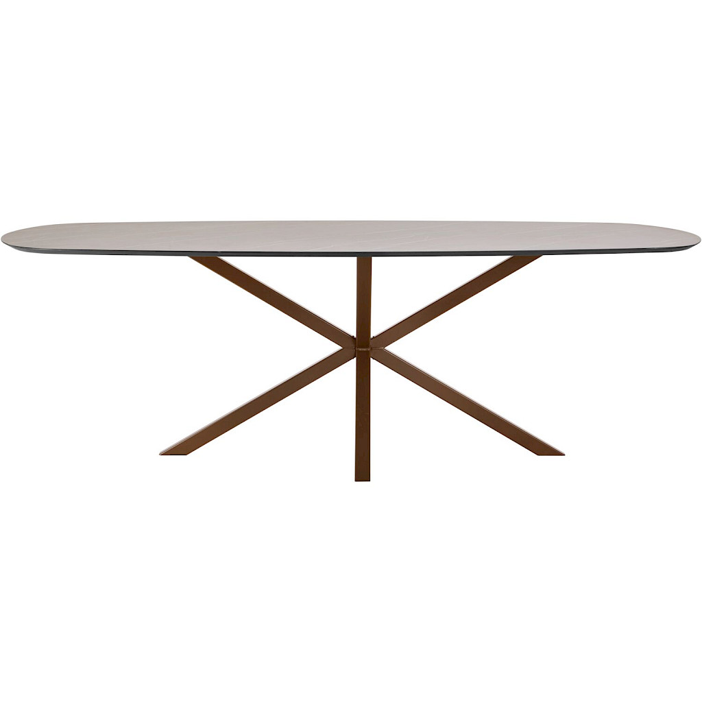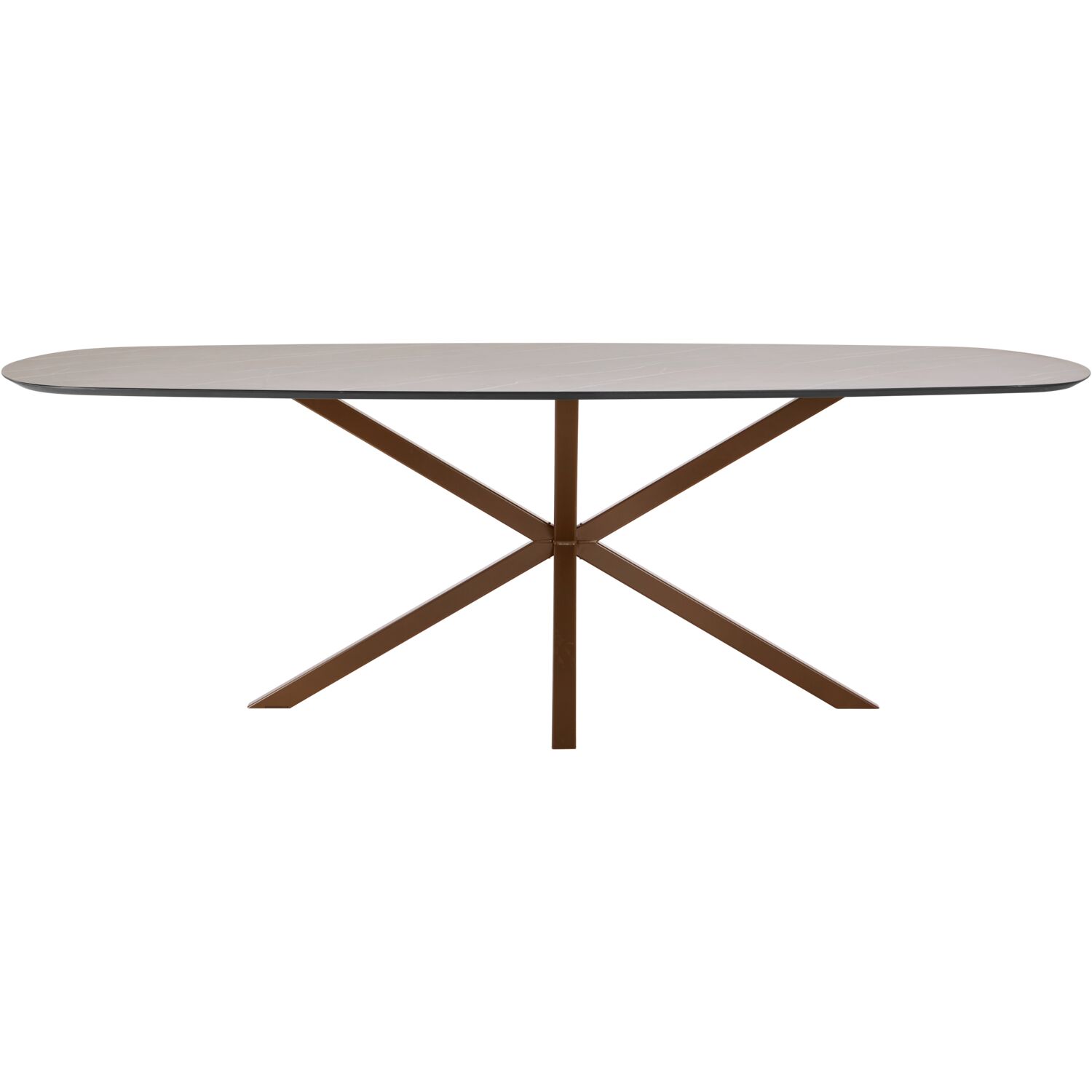 Eettafel Solida kent een tal van mogelijkheden. Deze moderne tafel is voorzien van een Deens ovale bovenblad in HPL kleur Ash en een metalen spinpoot in kleur Anodic brown. Met een lengte van 240 cm kun je er gemakkelijk 6 tot 8 personen aan kwijt.