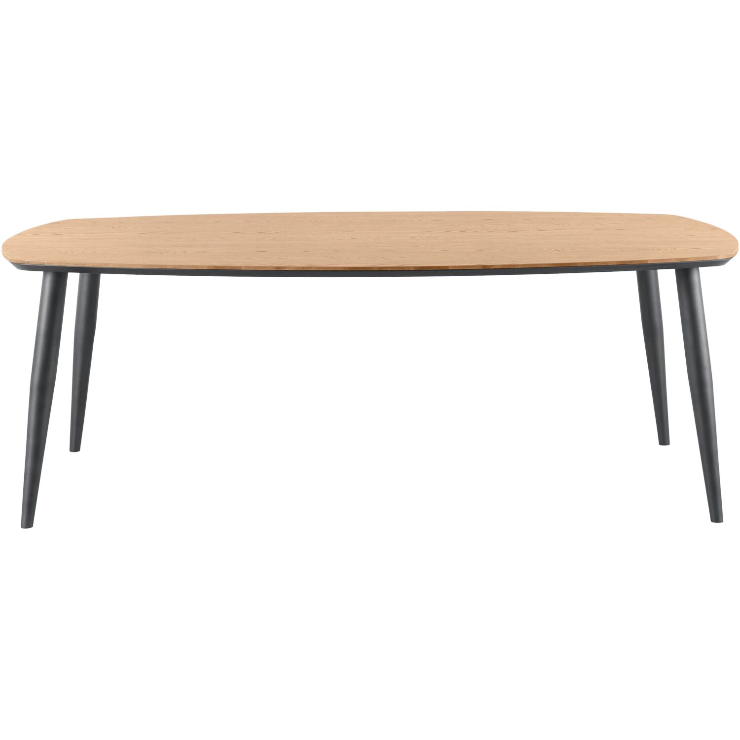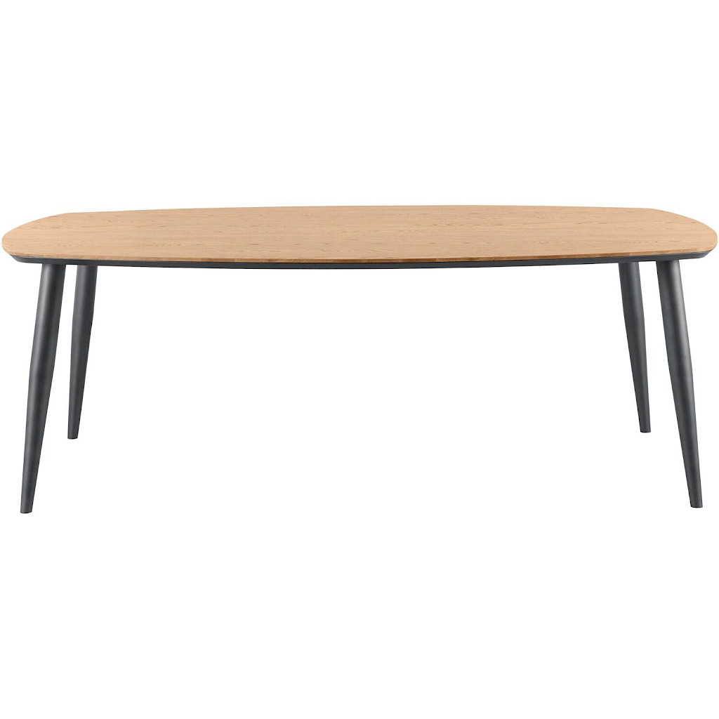 Eettafel Stonara is onderdeel van een woonprogramma en heeft een strakke en moderne uitstraling. De mooie combinatie van het Deens ovale blad met houtstructuur en de schuine metalen zwarte poten geven de tafel een stoere touch. De eettafel heeft een lengte van 220 cm en een breedte van 120 cm, waardoor je gemakkelijk 4 tot 8 zitplaatsen kunt creëren.