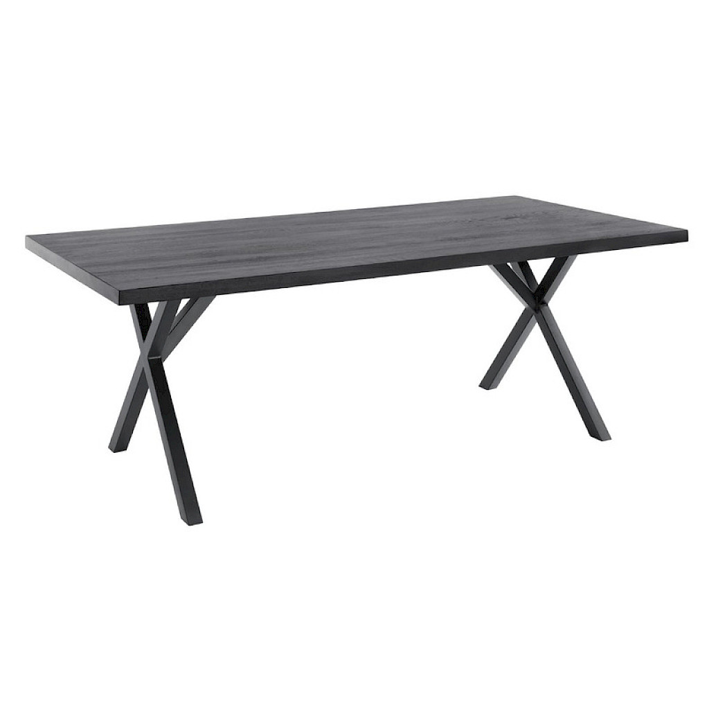 Eettafel Taranto is er eentje met 1001 mogelijkheden. Deze zwarte eikenhouten tafel is voorzien van een rechthoekig bovenblad en zwarte metalen X-poten met steun wat de Taranto een stoere look geeft. Met een lengte van 220 cm kun je er gemakkelijk 4 tot 6 personen aan kwijt.