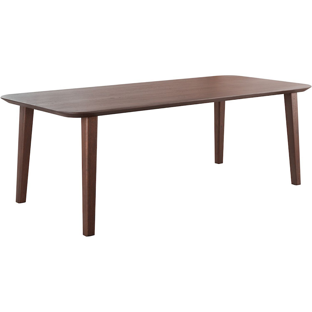 Het rechthoekige tafelblad onderscheidt zich door zijn moderne, afgeronde hoeken en subtiele afschuining. Deze strakke en vloeiende lijnen geven de tafel een elegant en eigentijds karakter, terwijl ze tegelijkertijd zorgen voor een uitnodigende en dynamische uitstraling. Dankzij deze vorm en de royale afmetingen van 220x100 cm biedt de tafel comfortabel ruimte aan zes tot acht personen, afhankelijk van de breedte van de stoelen en het type poot.