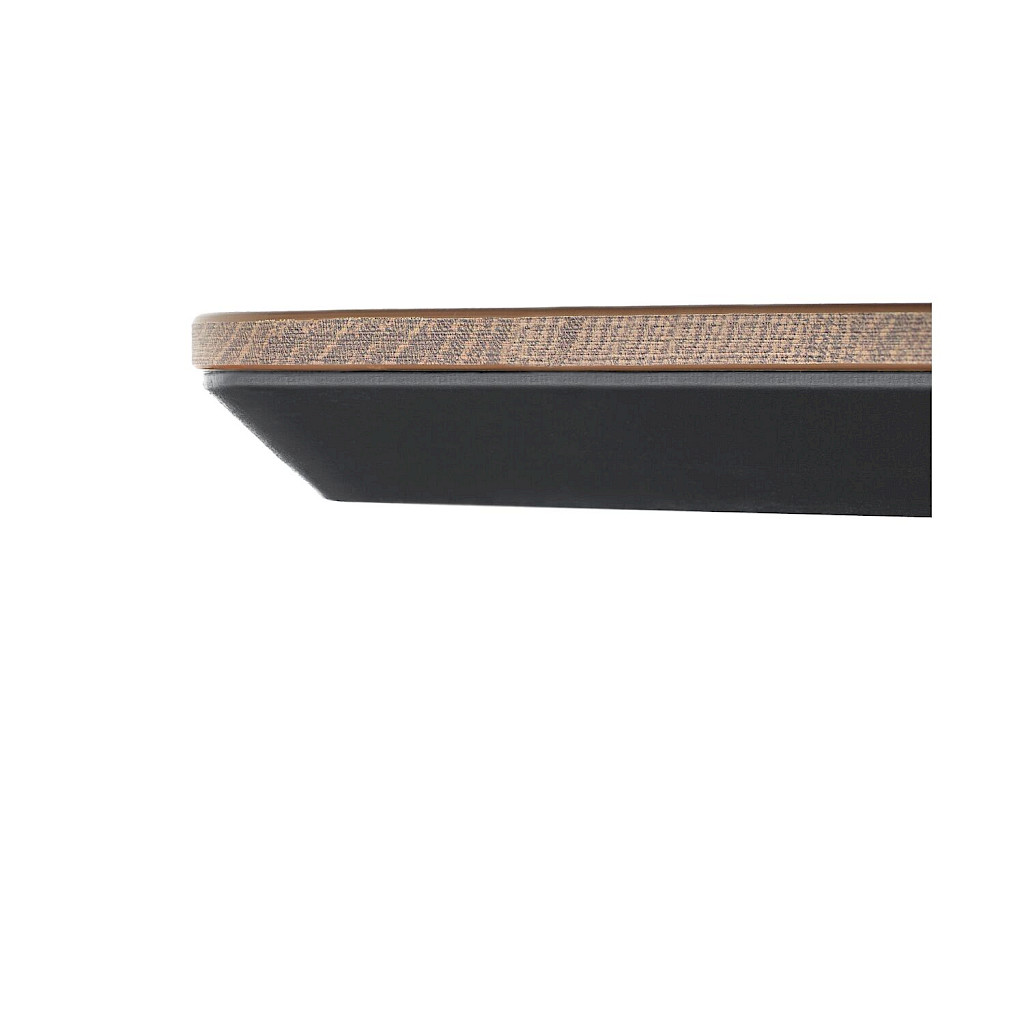 Eettafel Warita is een stijlvolle eettafel met veel verschillende mogelijkheden. De combinatie van het Deens ovale bovenblad met houtstructuur en zwarte metalen spinpoot zorgen voor een moderne uitstraling. Dankzij de hoogwaardige Lamulux afwerking in kleur dark mango heeft de eettafel de uitstraling en het gevoel van echt hout, maar is zeer kras-, slijt- en stootvast én makkelijk in onderhoud.