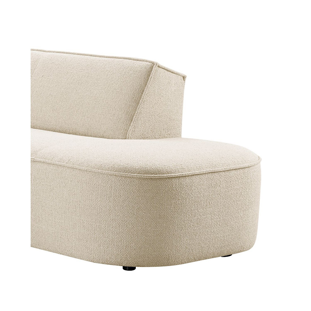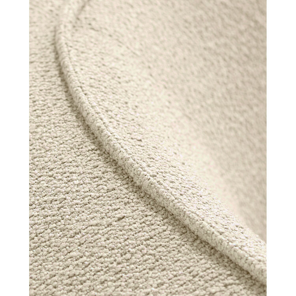 Hoek met eiland L190 breed rond links + 2 zits zonder armen + hoek met eiland L220 rond rechts in stof rhythm 01-naturel met 2 lagen HR-koudschuim in de zitting, polyetherschuim in de rug en zwarte kunststof poten (4 cm).