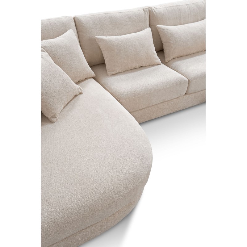 Onze bank Parosa heeft prachtige ronde lijnen en is uitgevoerd in de nieuwe bouclé stof Sino. De ronde elementen zijn ook verkrijgbaar in een rechte uitvoering.