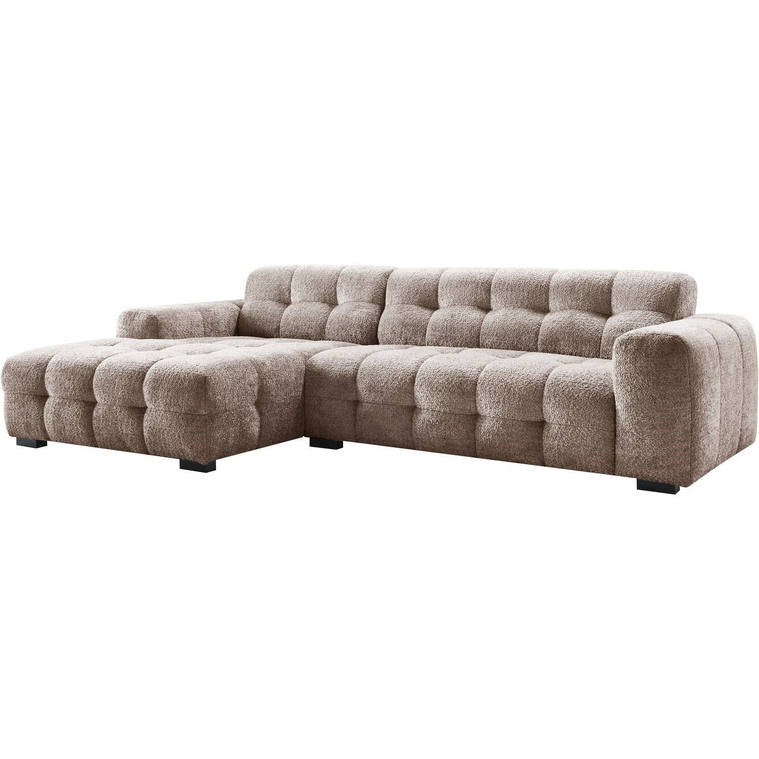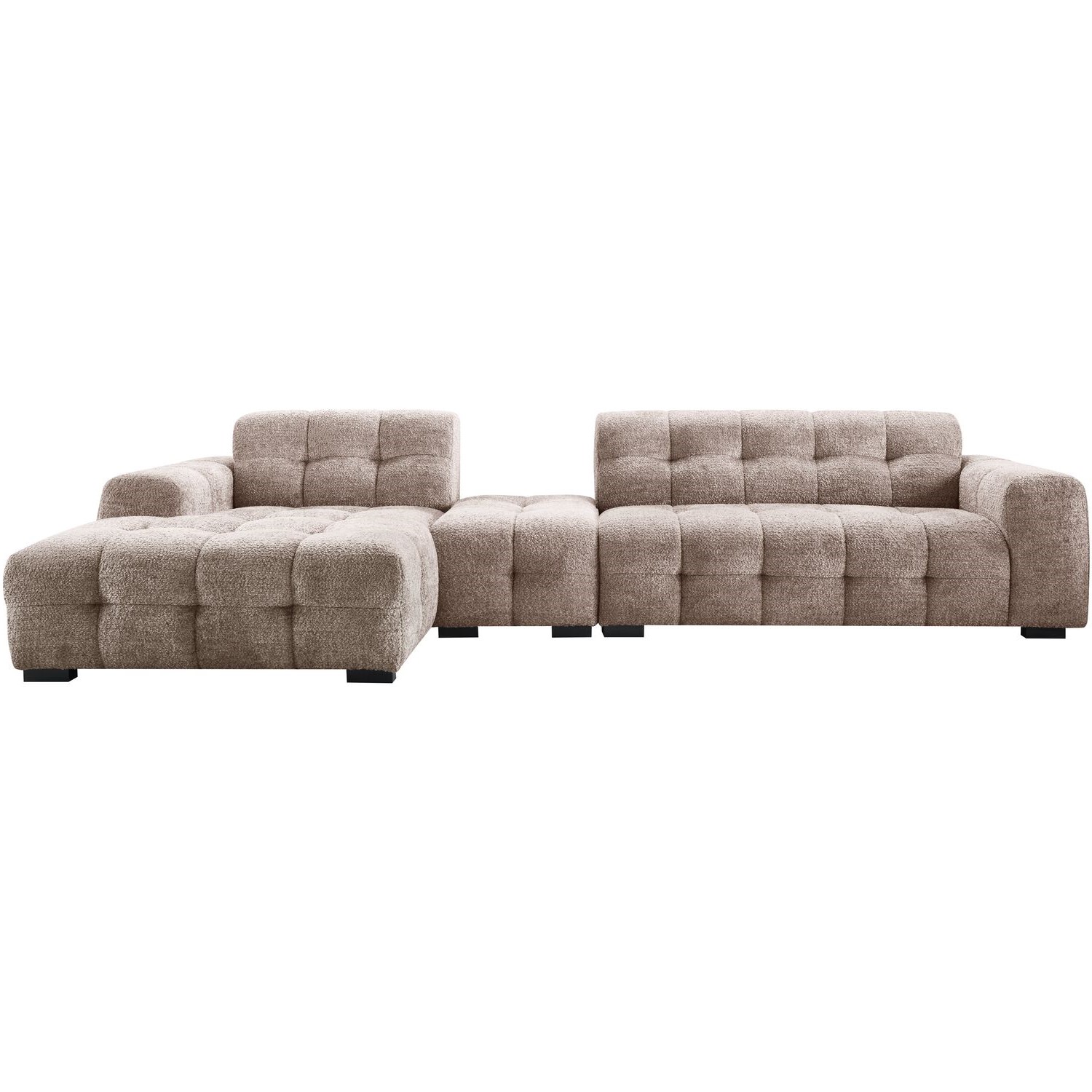 Longchair 90 arm links + 2,5 zits arm rechts uitgevoerd in stof euphoria 4-taupe met zwarte houten poten.