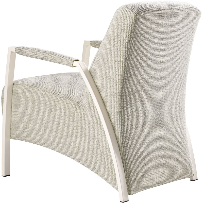 Fauteuil Grandola heeft een eigentijdse uitstraling en past in verschillende interieurs. Dit model is uitgevoerd in de stoere weefstof Greta. De grove structuur van deze stof voelt lekker zacht en warm en is in combinatie met een strak wit frame, een echte blikvanger in je interieur.
