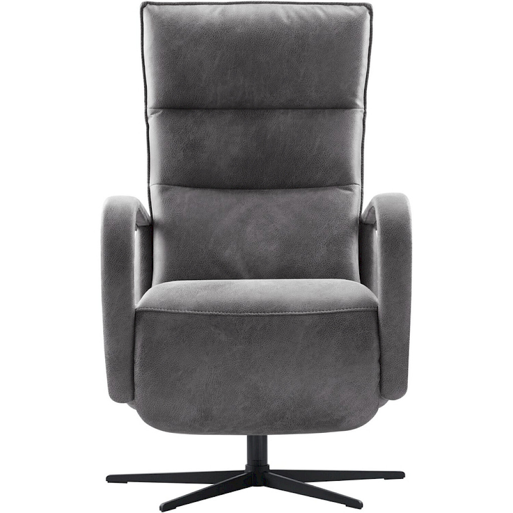 Uitgevoerd in stof ML dakota 68-donkergrijs met horizontale banen in de rug (rug A), arm 1. Met 5-teensvoet zwart (KMF3). Zithoogte + 3cm, zitting pocketvering + HR. 2-motorige relaxfunctie + accu. OP=OP Maximale belastbaarheid 120 kg.
