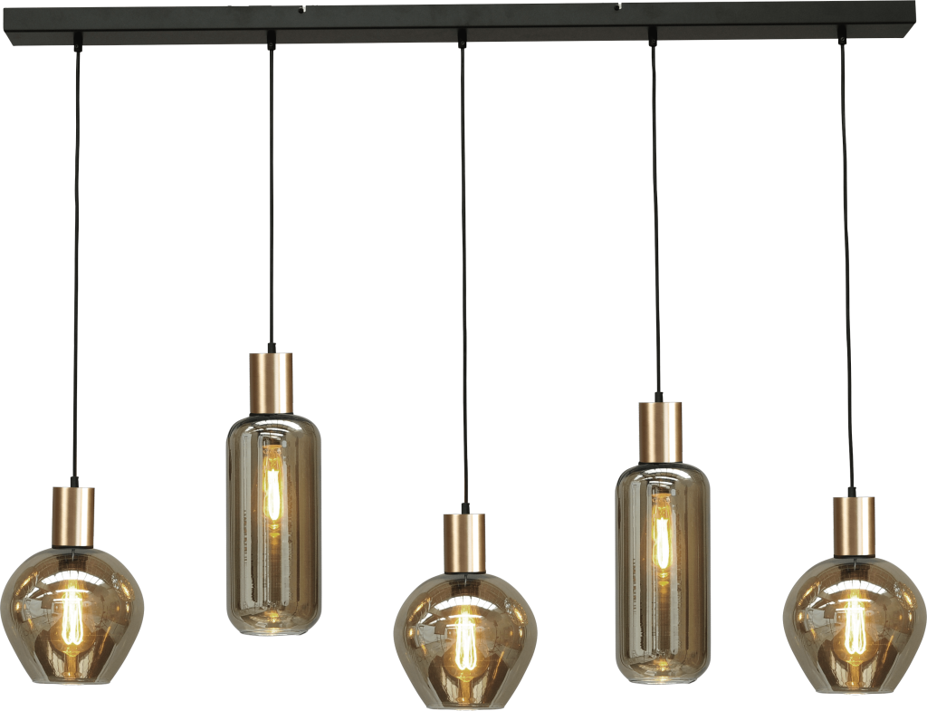De Hanglamp Bounty 5-lichts combineert een industrieel design met strakke metalen lijnen en biedt dankzij de vijf lichtbronnen een krachtige, maar verfijnde verlichting. De dimbare E27-fittingen zorgen voor flexibele sfeerinstellingen, waardoor deze lamp de perfecte keuze is voor elke ruimte die stijl en functionaliteit vereist.