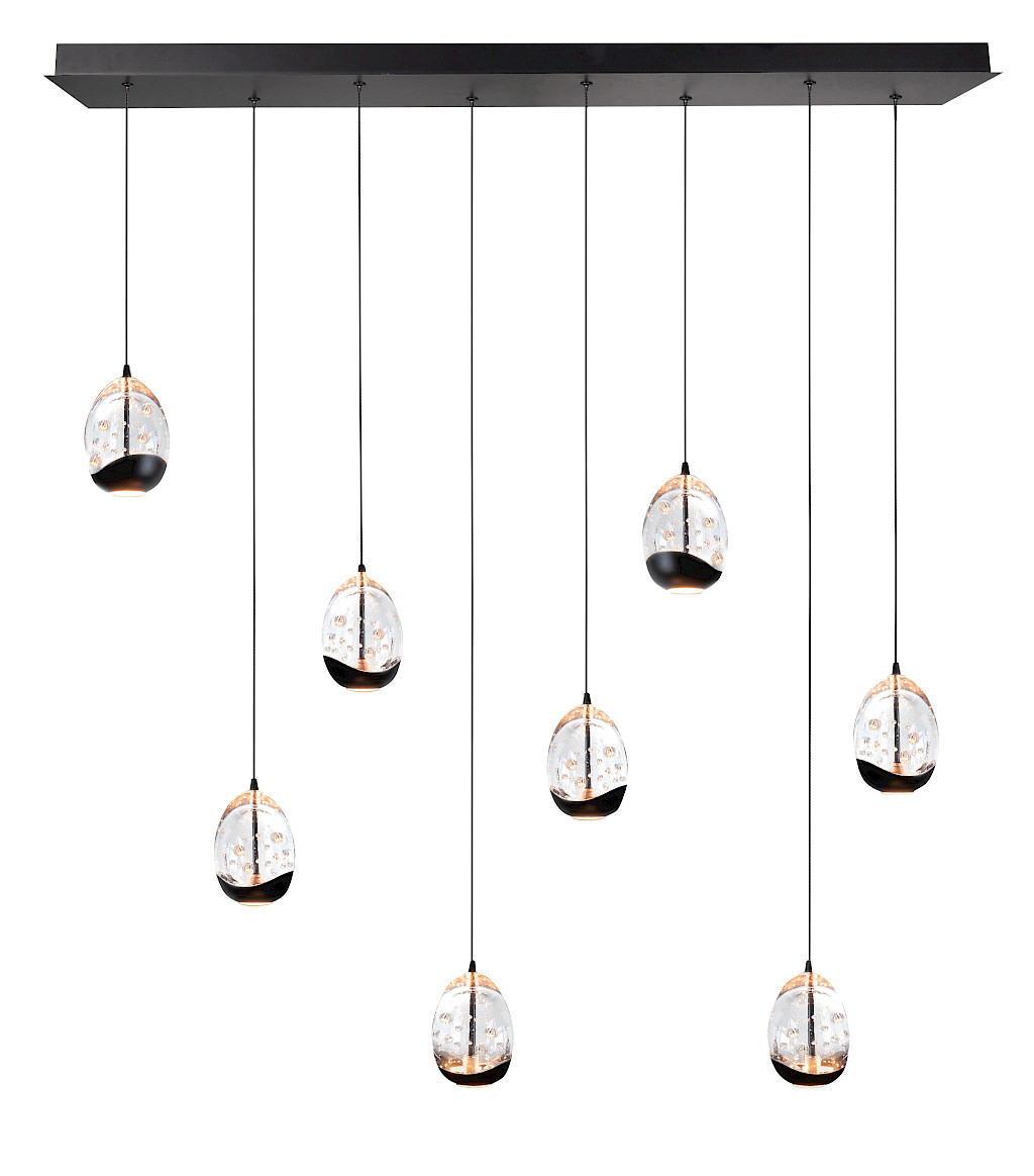 Hanglamp Clear Egg zwart + doorzichtig glas 8 lichtpunten . Deze lamp wordt compleet geleverd met lichtbron(nen). Als lichtbron kan alleen een LED lamp worden gebruikt. Dimbaar via externe dimmer.