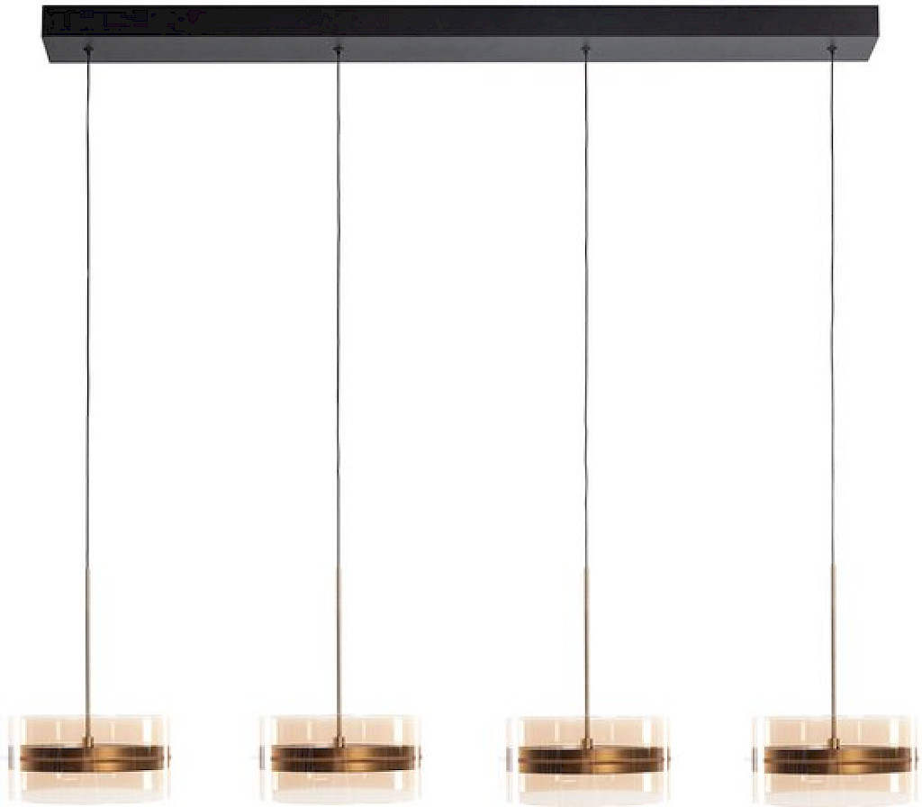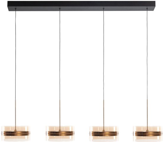 De Enzo 4-lichts hanglamp is een perfecte combinatie van elegant design en warme sfeerverlichting. De vier cilindervormige glazen kappen in een stijlvolle champagnekleur zorgen voor een luxe uitstraling en een prachtige lichtspreiding.