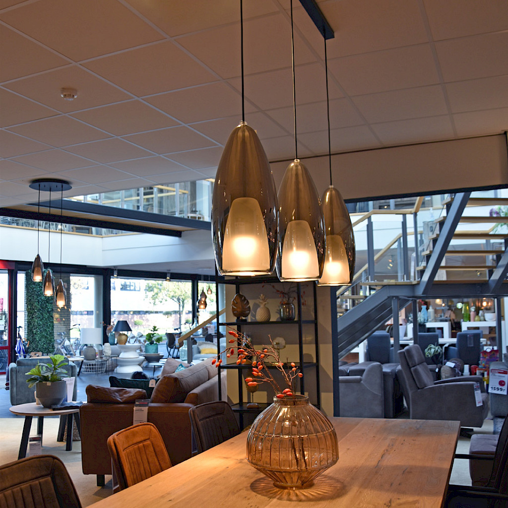 Hanglamp Flute Balk is een prachtige lamp met drie lichtpunten. Het dubbele glas van de lamp zorgt voor een mooie verspreiding van het licht.