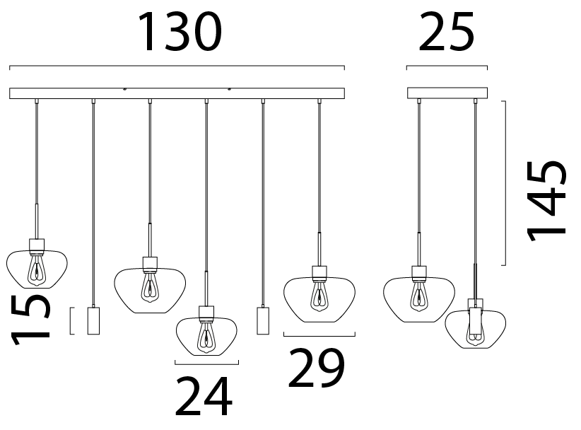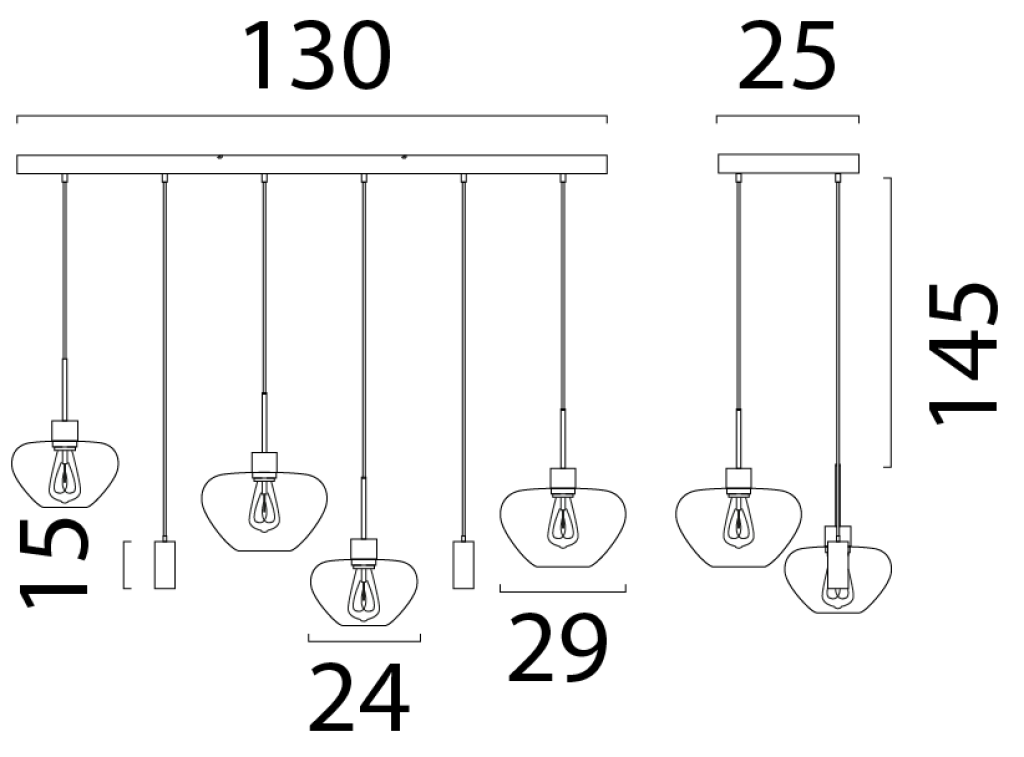 De Genua 6-lichts hanglamp combineert elegantie en functionaliteit met zes glazen kappen, een strakke metalen ophangconstructie en dimbare E27-fittingen. Deze lamp biedt zowel een verfijnde uitstraling als voldoende verlichting, perfect voor grotere ruimtes waar stijl en sfeer samenkomen.