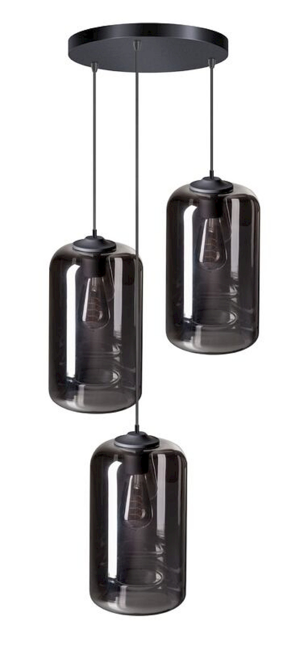 Uitgevoerd in zwart metaal met smoke glas, 3 lichts (hxØglas) 175x18 cm Excl. lichtbron E27